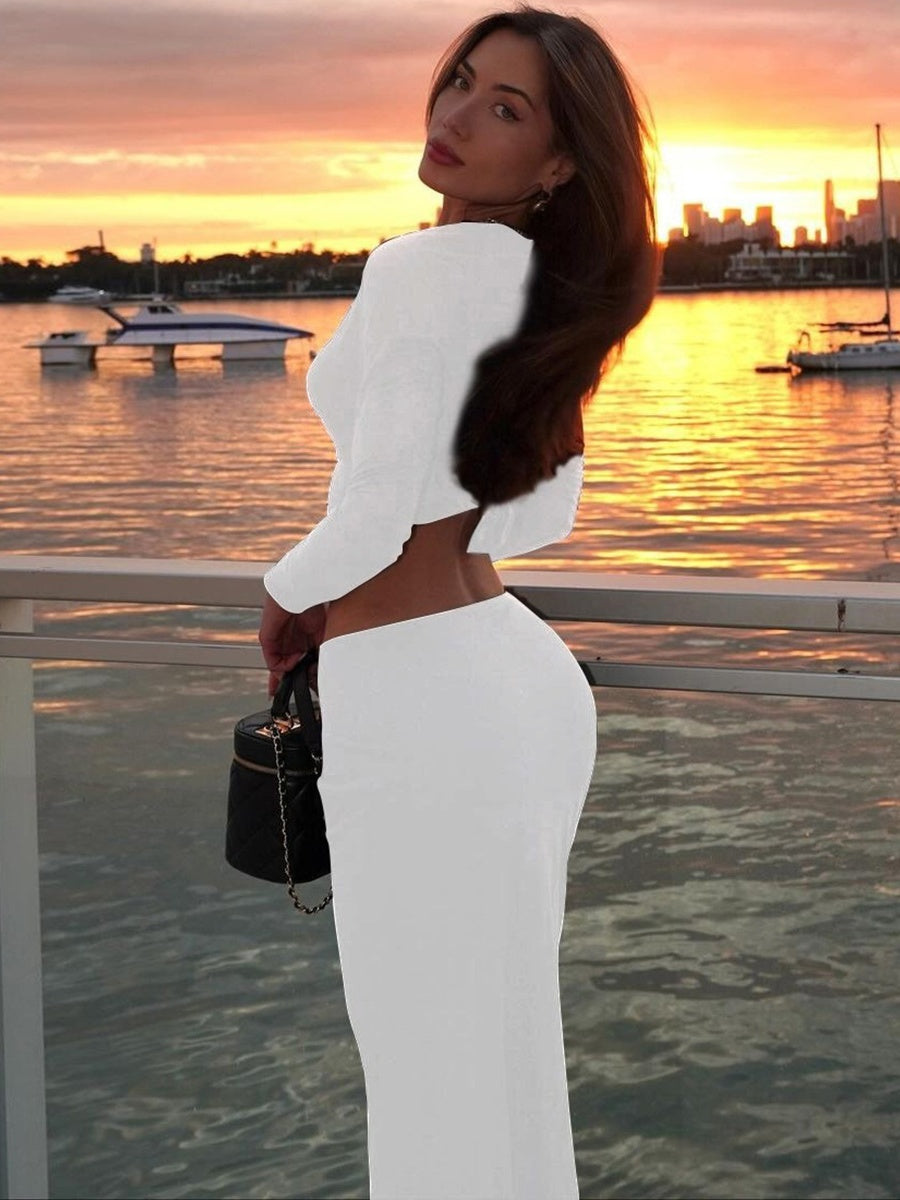 Liber Autumn Women's Navel Solid Color 2-piece Sets