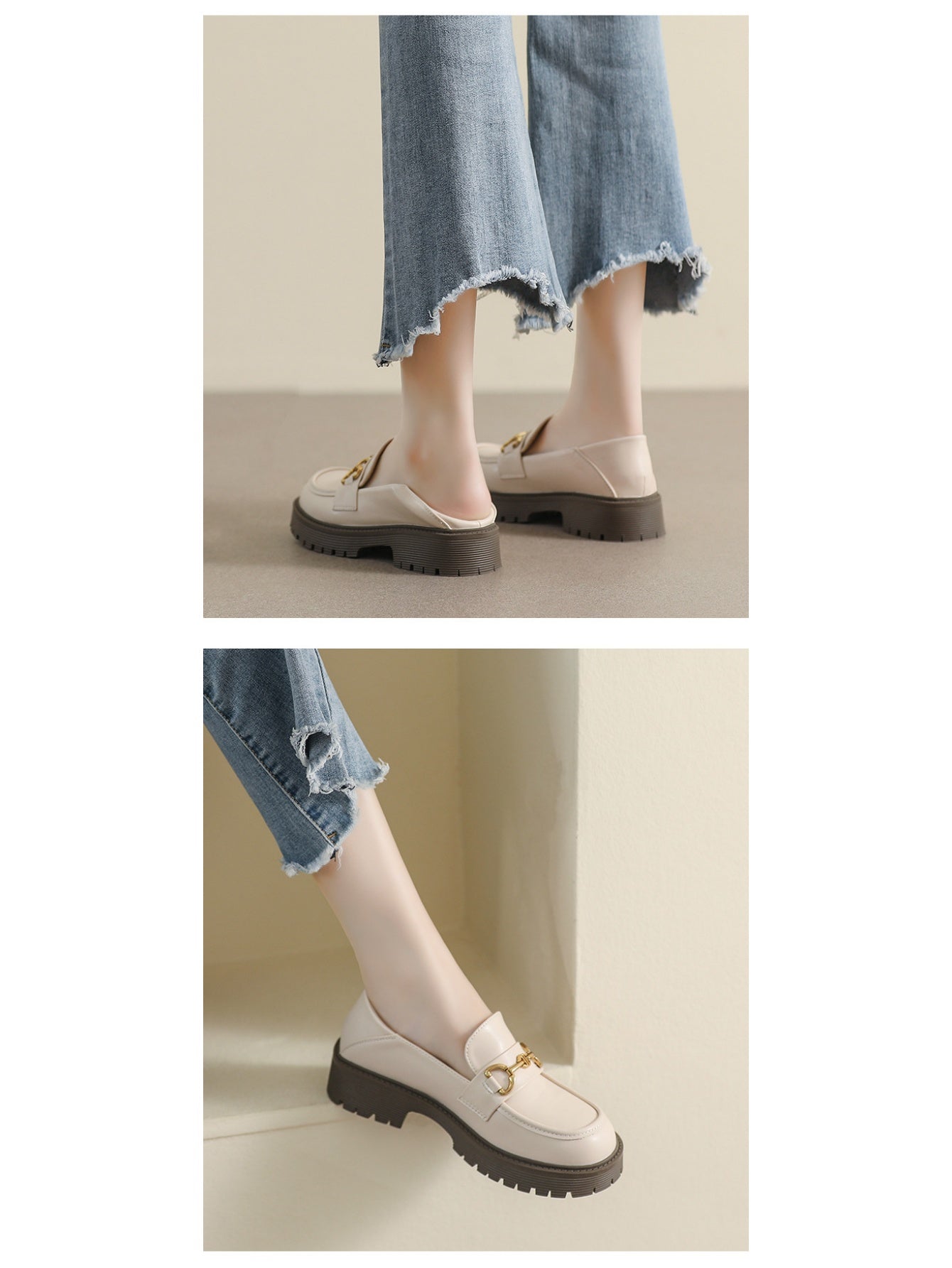 Liber Spring and Autumn Thick-soled Metal Buckle Women's Loafers