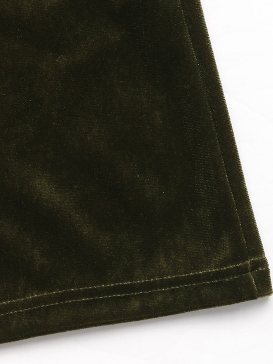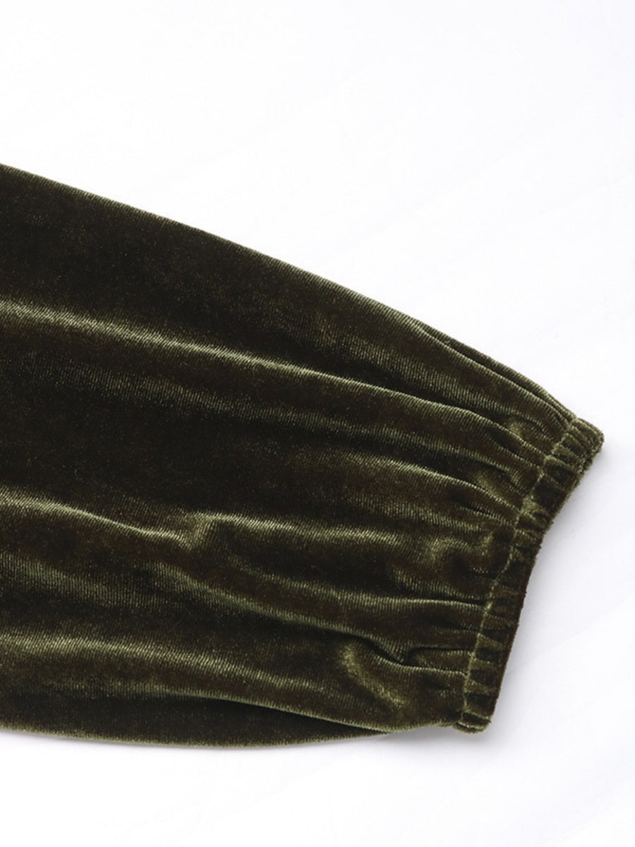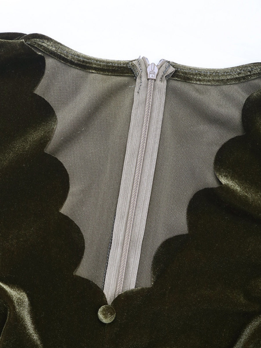 Long-sleeved V-neck Velvet Lace Collar Button Front Slit Formal Evening Midi Dress