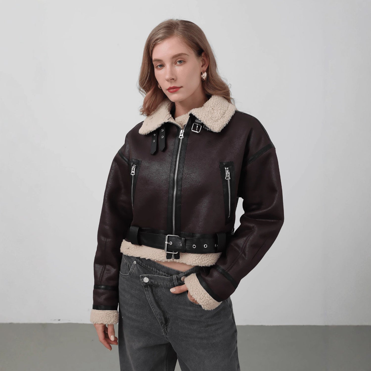 Leather Panelled Fur Pocket Jacket