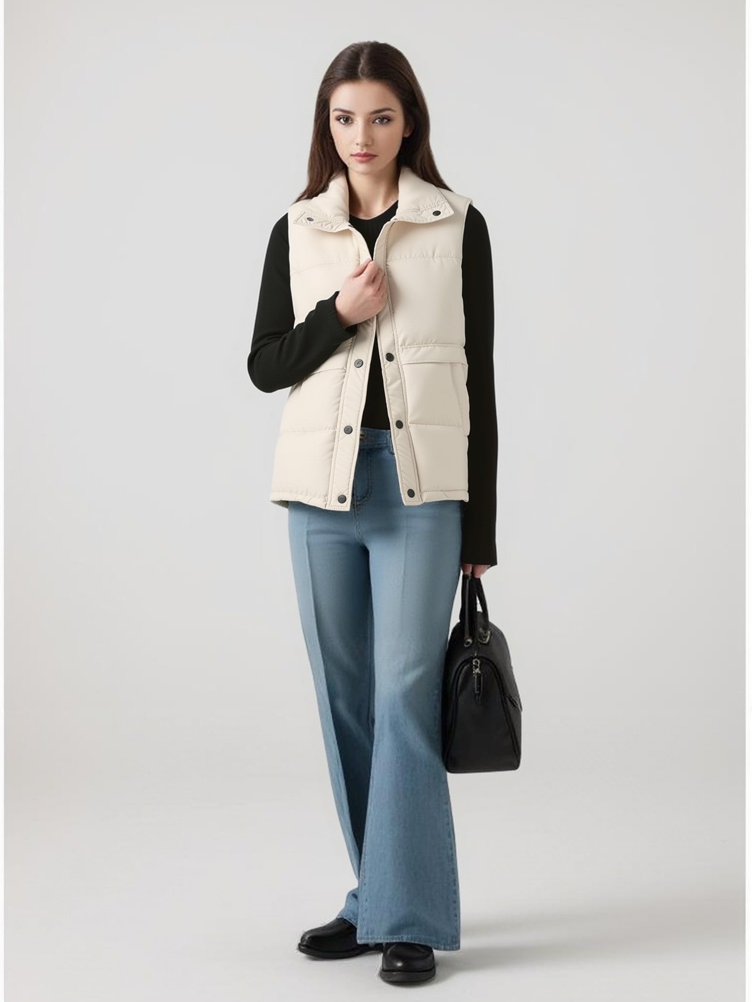 Short Loose And Versatile Pocket Stand Collar Down Jackets Vests