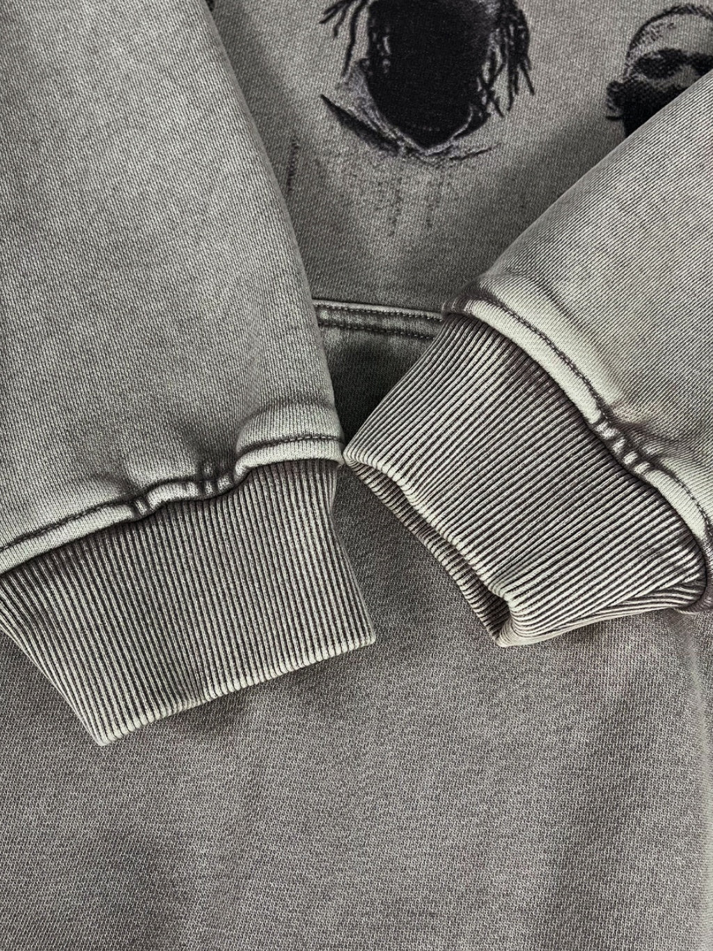 Hip Hop Digital Direct Injection Portrait Print Washing And Aging Hoodies