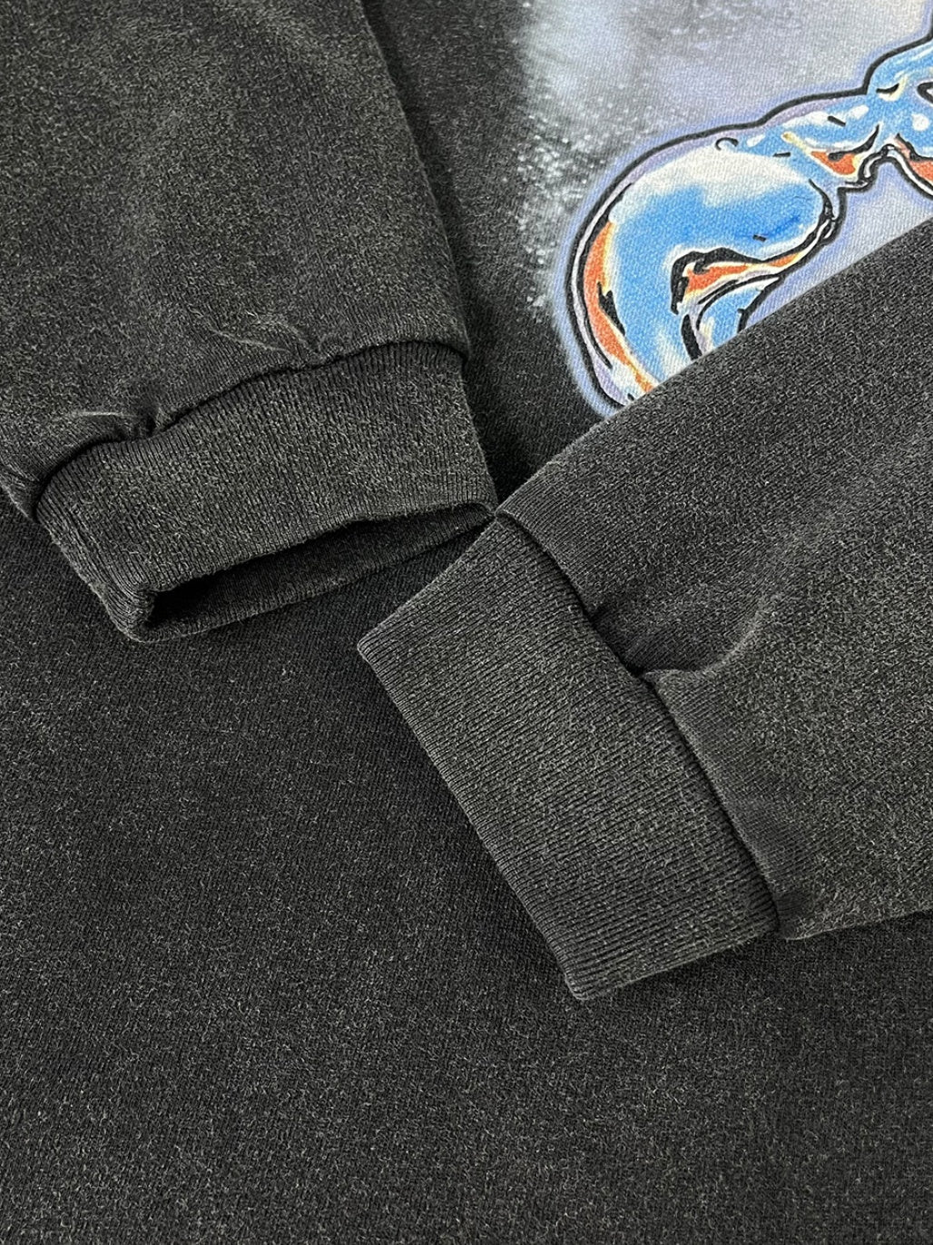 Scorpion Printed Street Fake Two Pieces Spliced Sleeves Washing And Aging Long-sleeved T-shirt