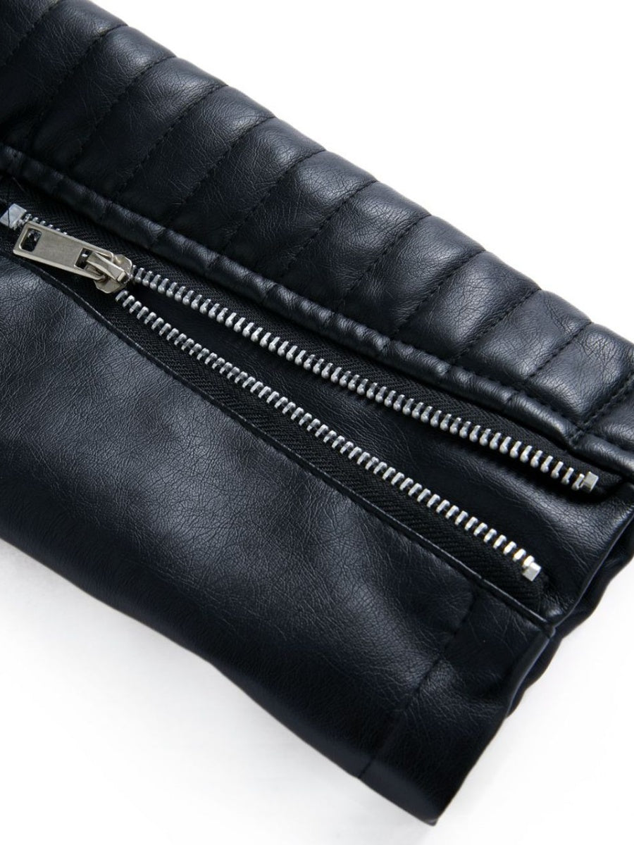 Three-dimensional Decoration Lapel Diagonal Zipper Short Leather Jacket