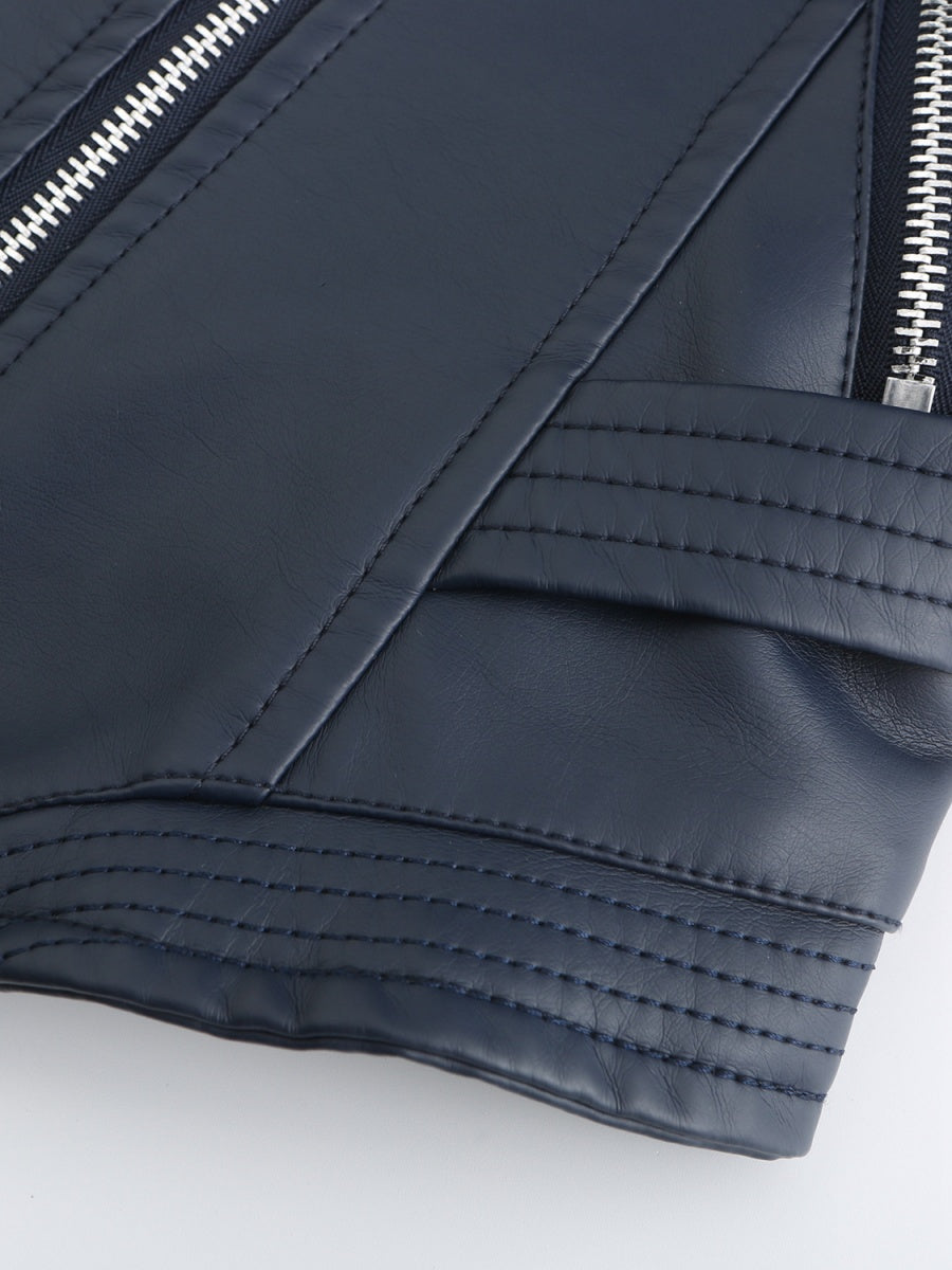 PU Leather Lapel Slim Fit Long Sleeve Short Jacket