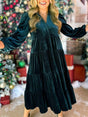 Velvet V-neck Multi-layer Ruffles Maxi Dresses