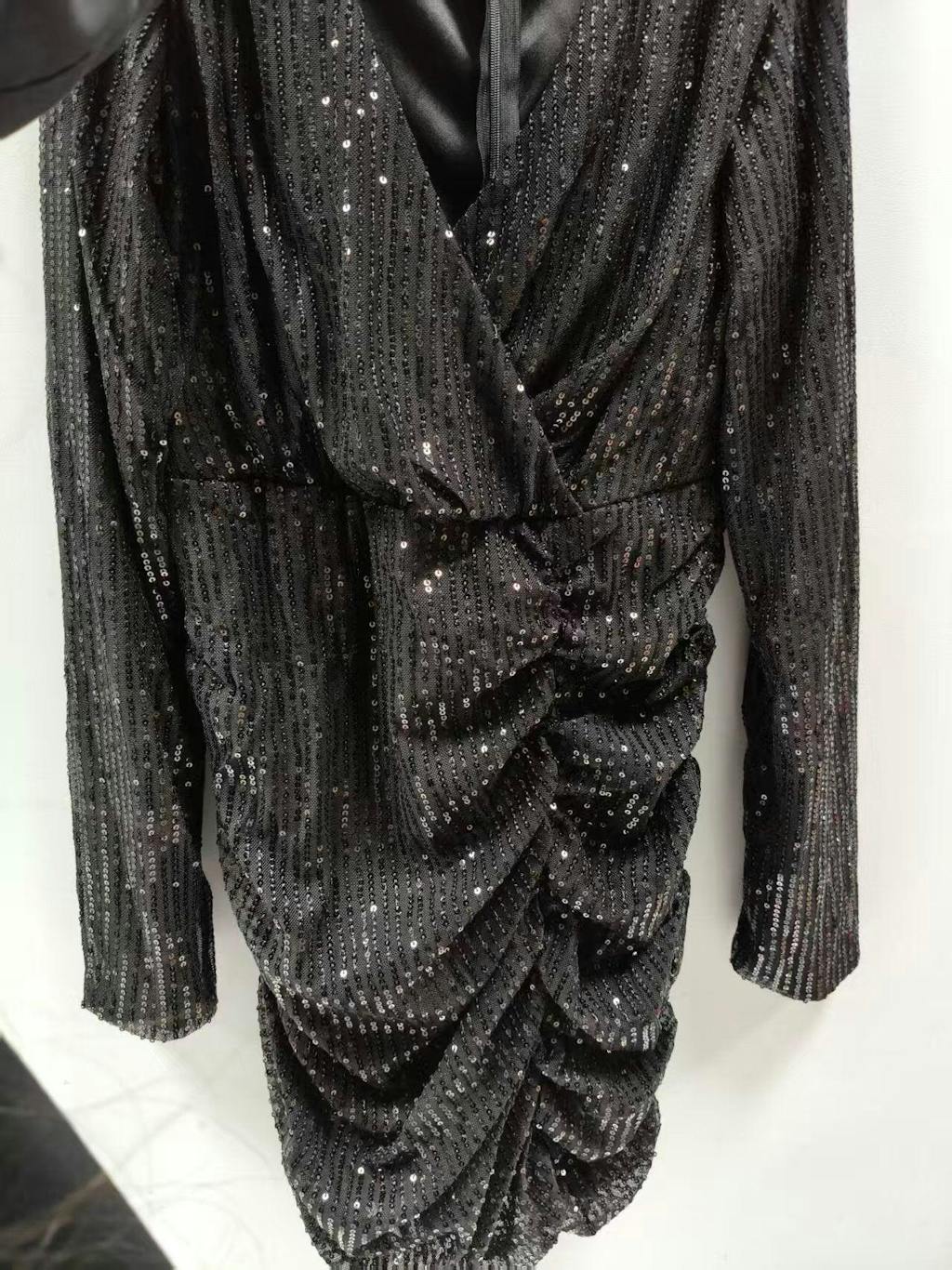 Sequins Solid Color Long Sleeve V-neck Mini&Short Dresses