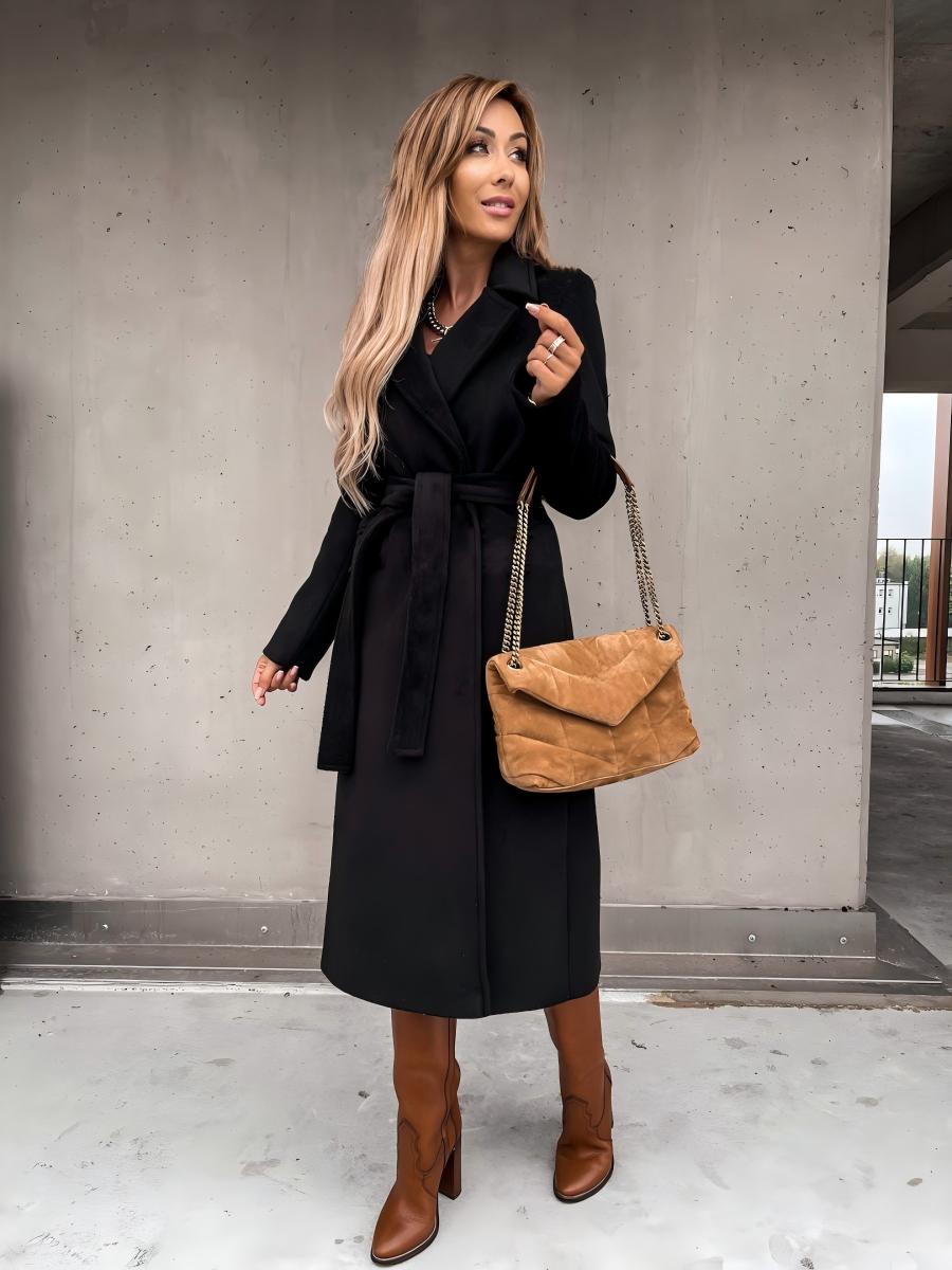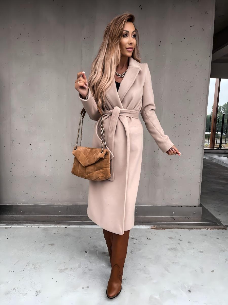 Solid Color Lapel Long Sleeve Woolen Simple Tie Coats