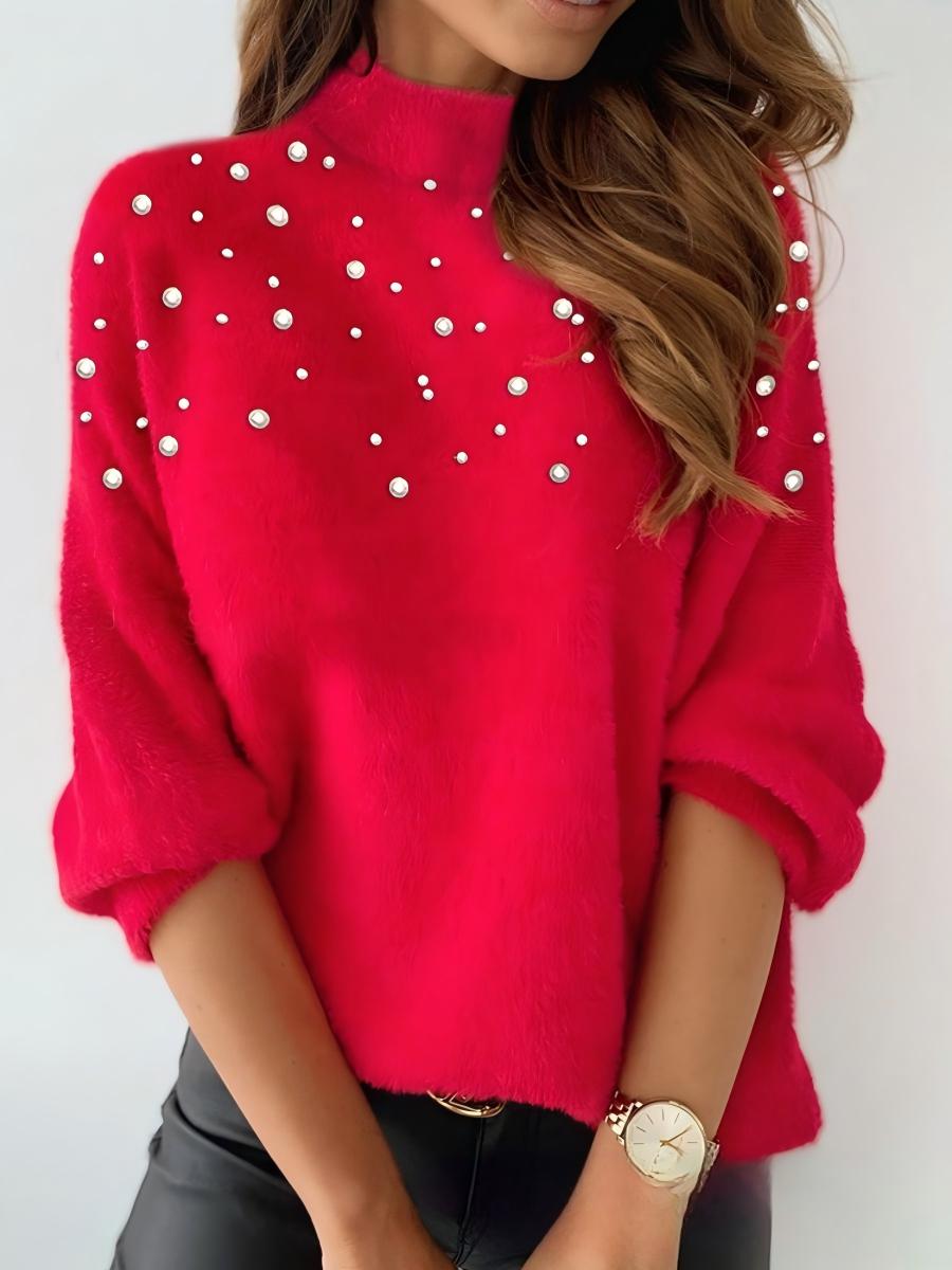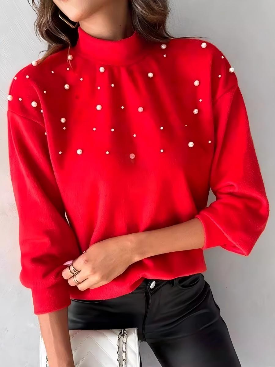 Beading Turtleneck Long Sleeve T-shirts