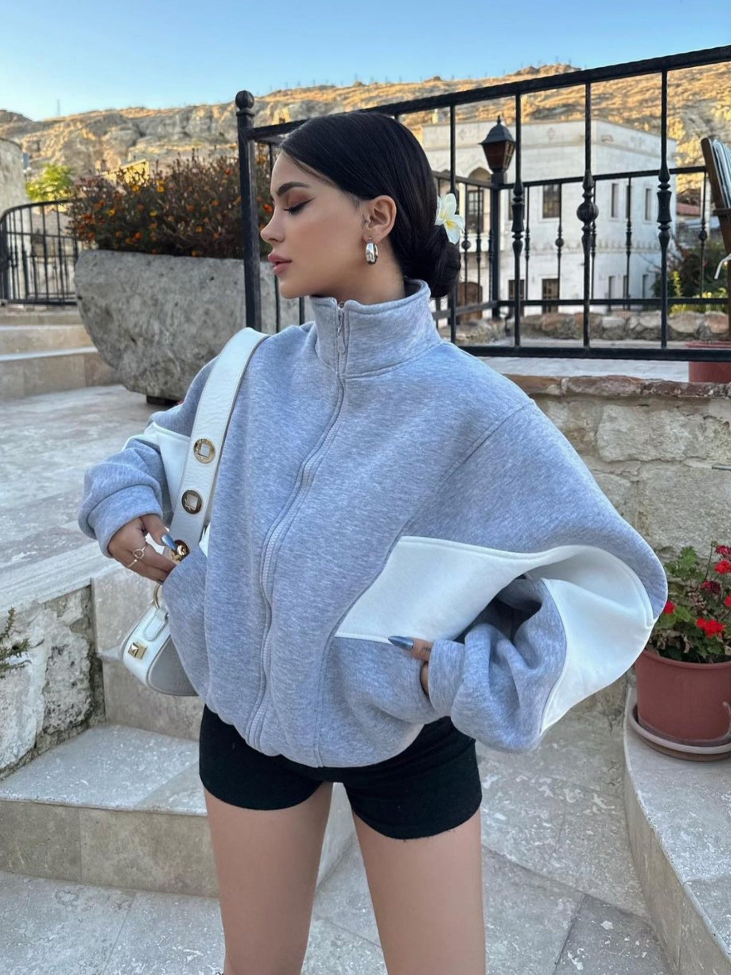 Color-blocked Stand-up Collar Zip-up Autumn/winter Long-sleeved Jacket