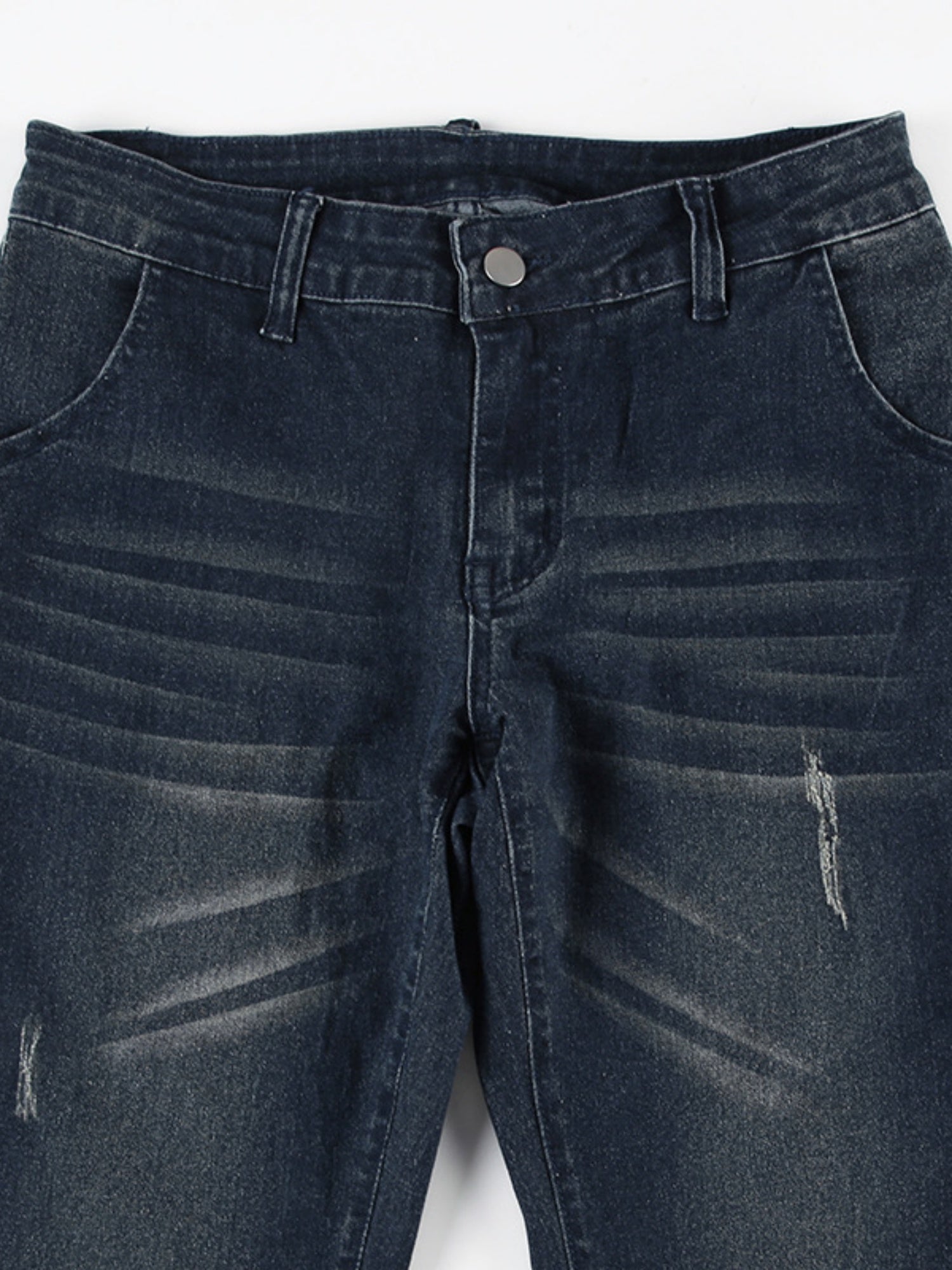 Low-rise Micro-flared Distressed Wash Buttons Jeans
