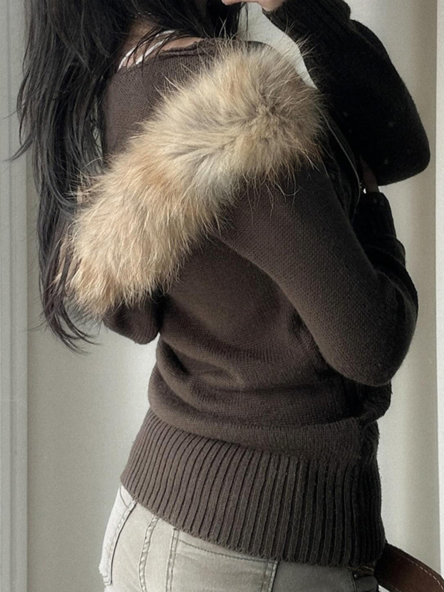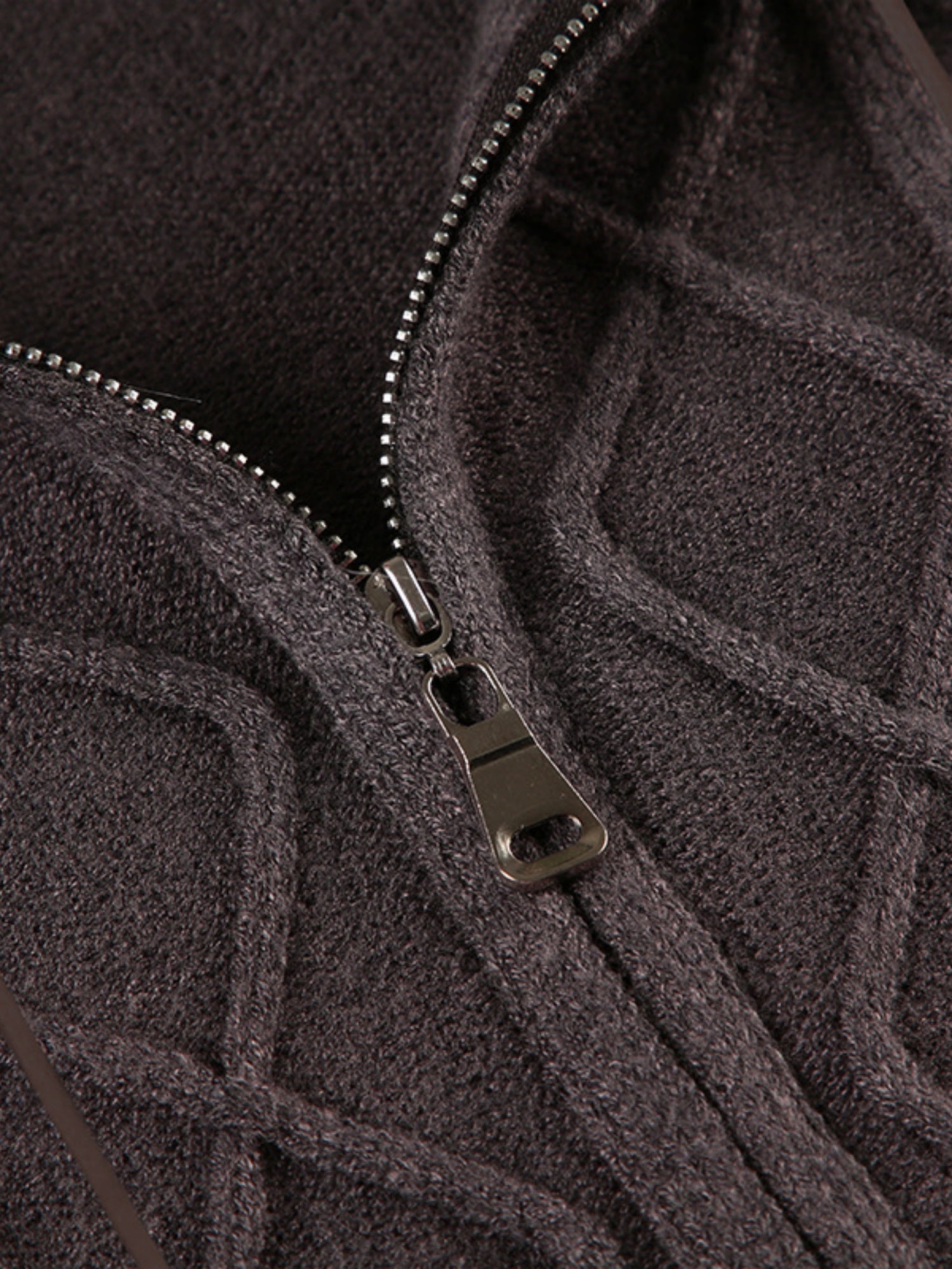 Twisted Dough Sticks Plush Patchwork Hoodies Zipper Sweater Cardigan