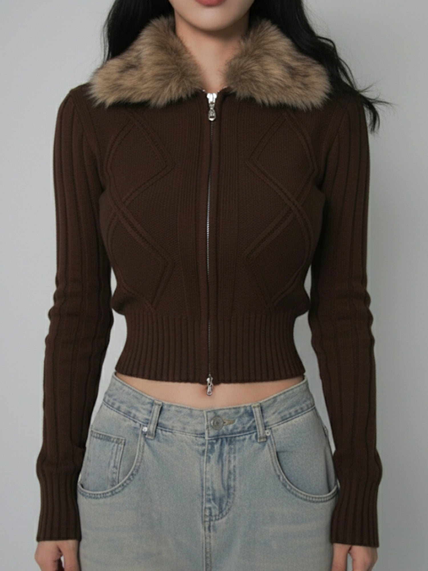 Warm Lapel Plush Patchwork Hoodies Zipper Jackets