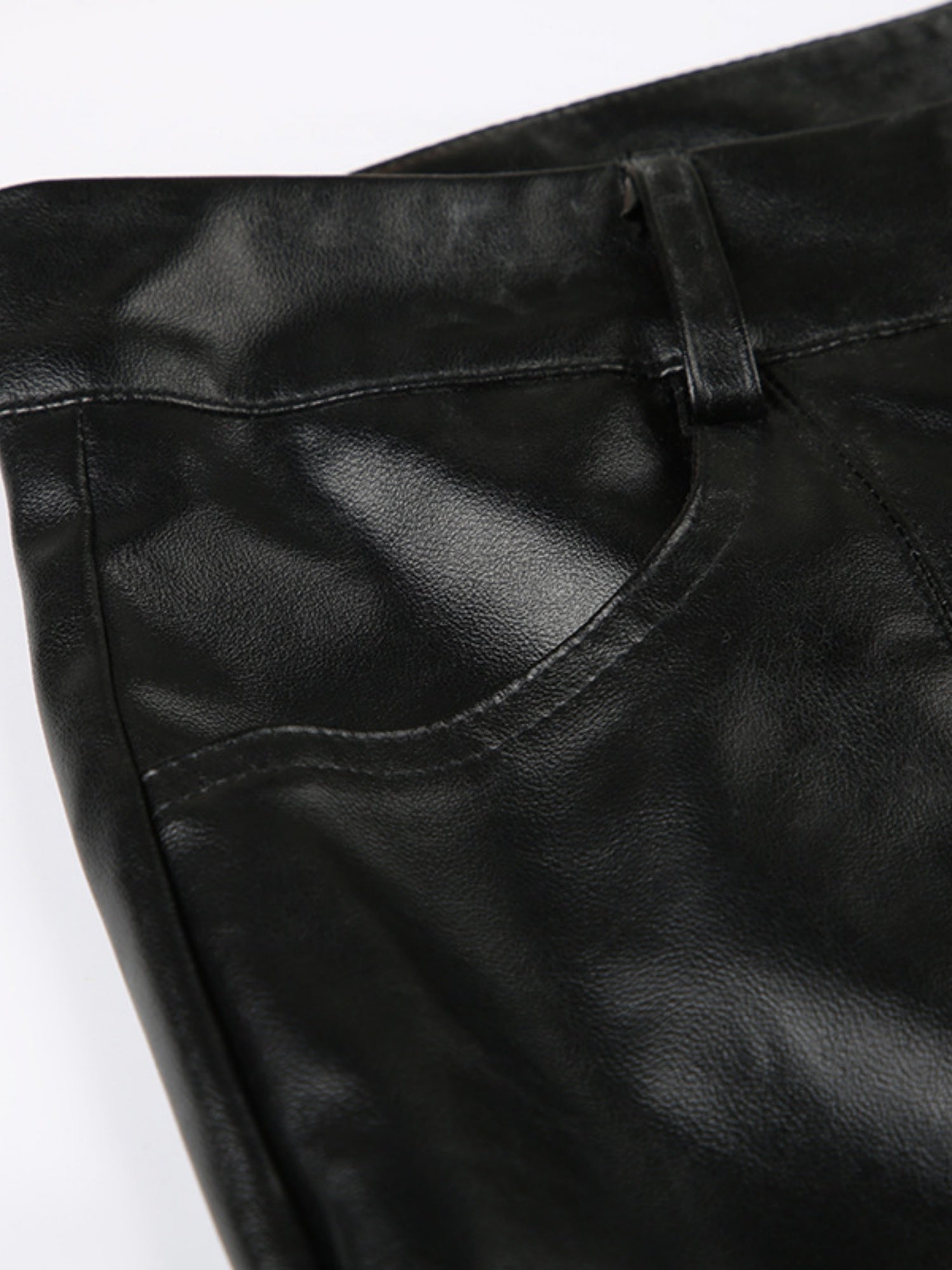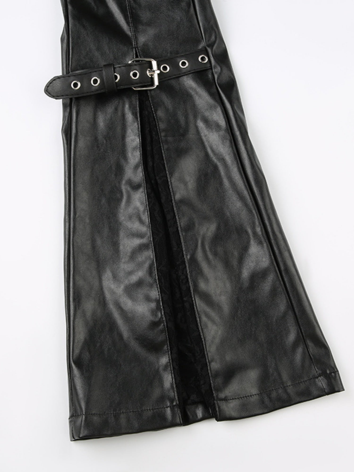 Leather Lace Patchwork Eyelet Buckle Low-rise Bell-bottoms Pants
