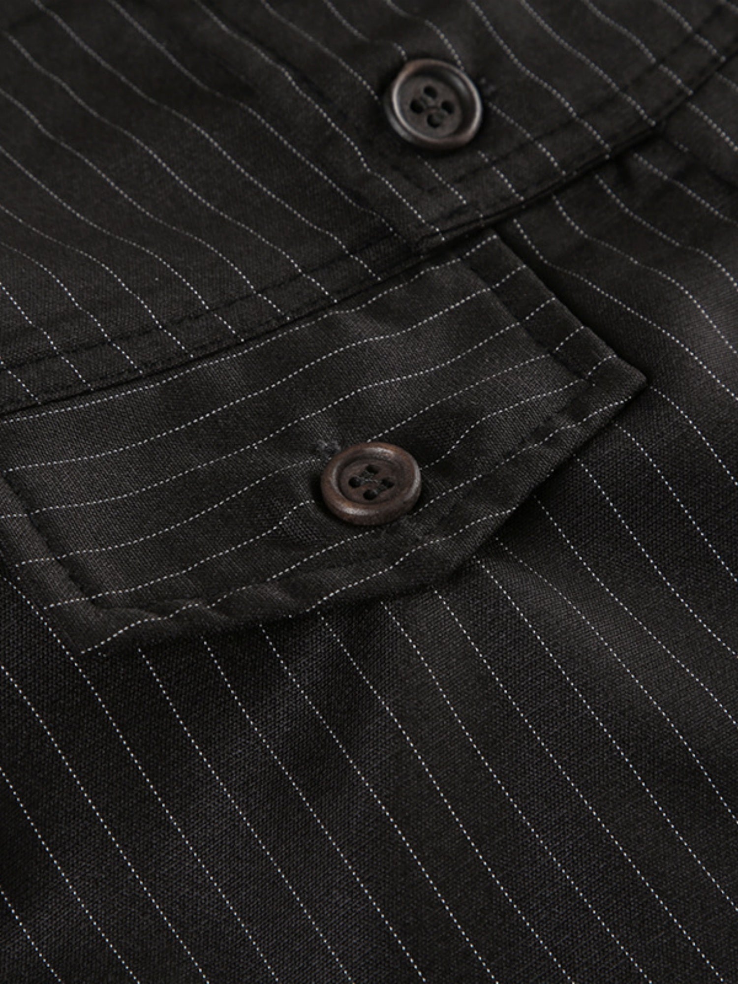 Stripes Contrasting Colors Buttons Straight-leg Pants Pants