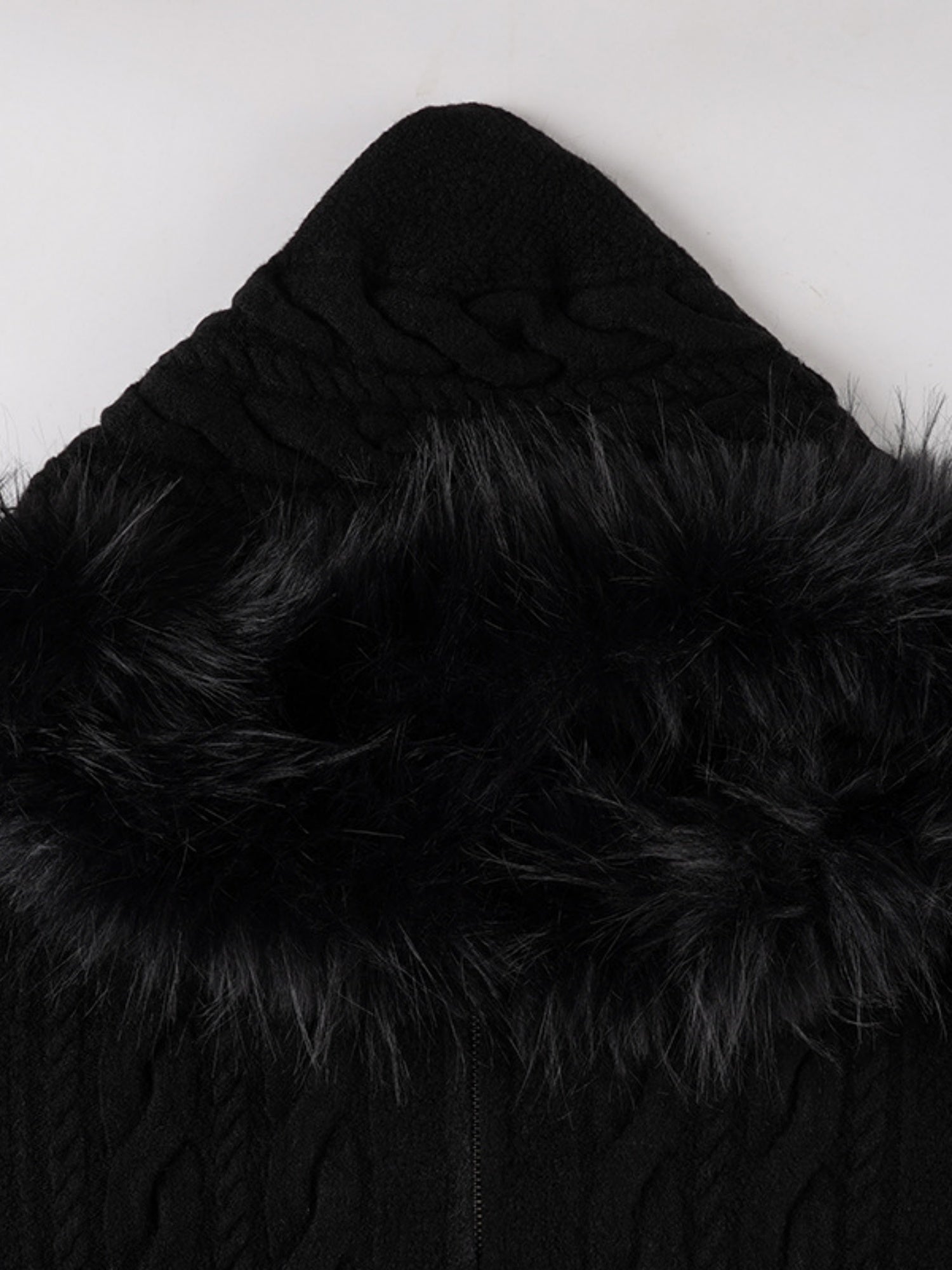 Plush Patchwork Hoodies Zipper Cable Knit Sweater Cardigans