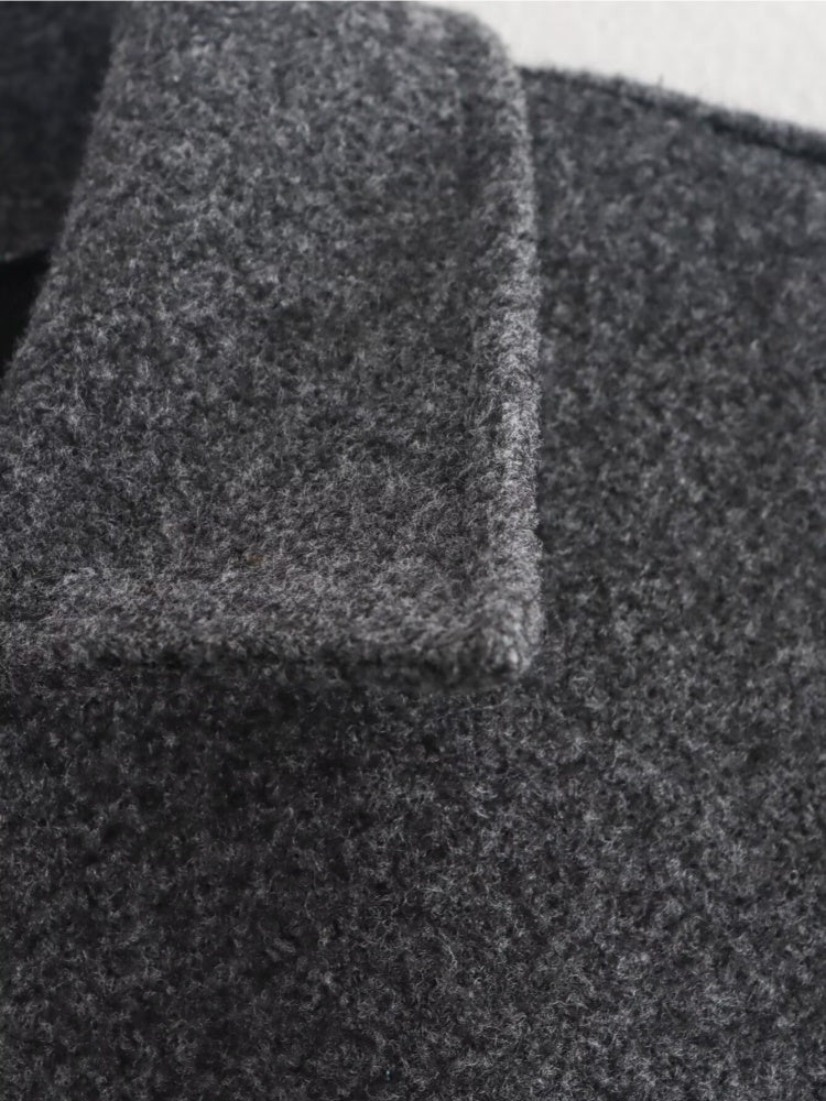 Lapel Zipper Solid Color Simple Oversized Woolen Jacket