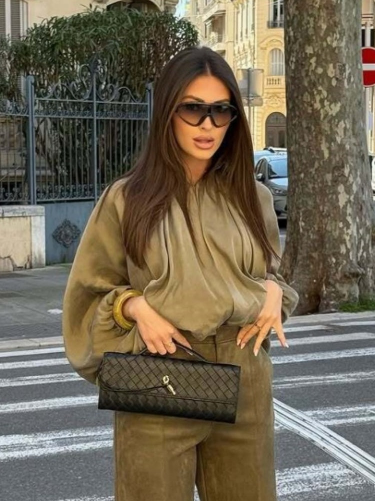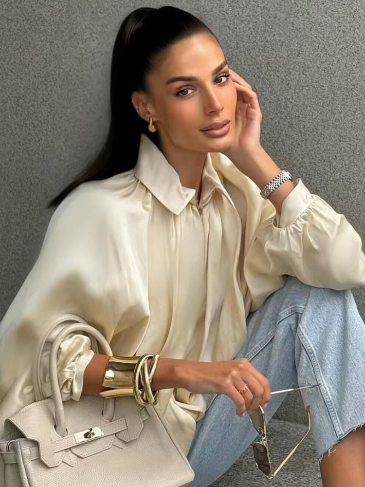 Batwing Sleeve Puff Sleeve Loose Casual Long Sleeve Zipper Suit Shirt Jacket