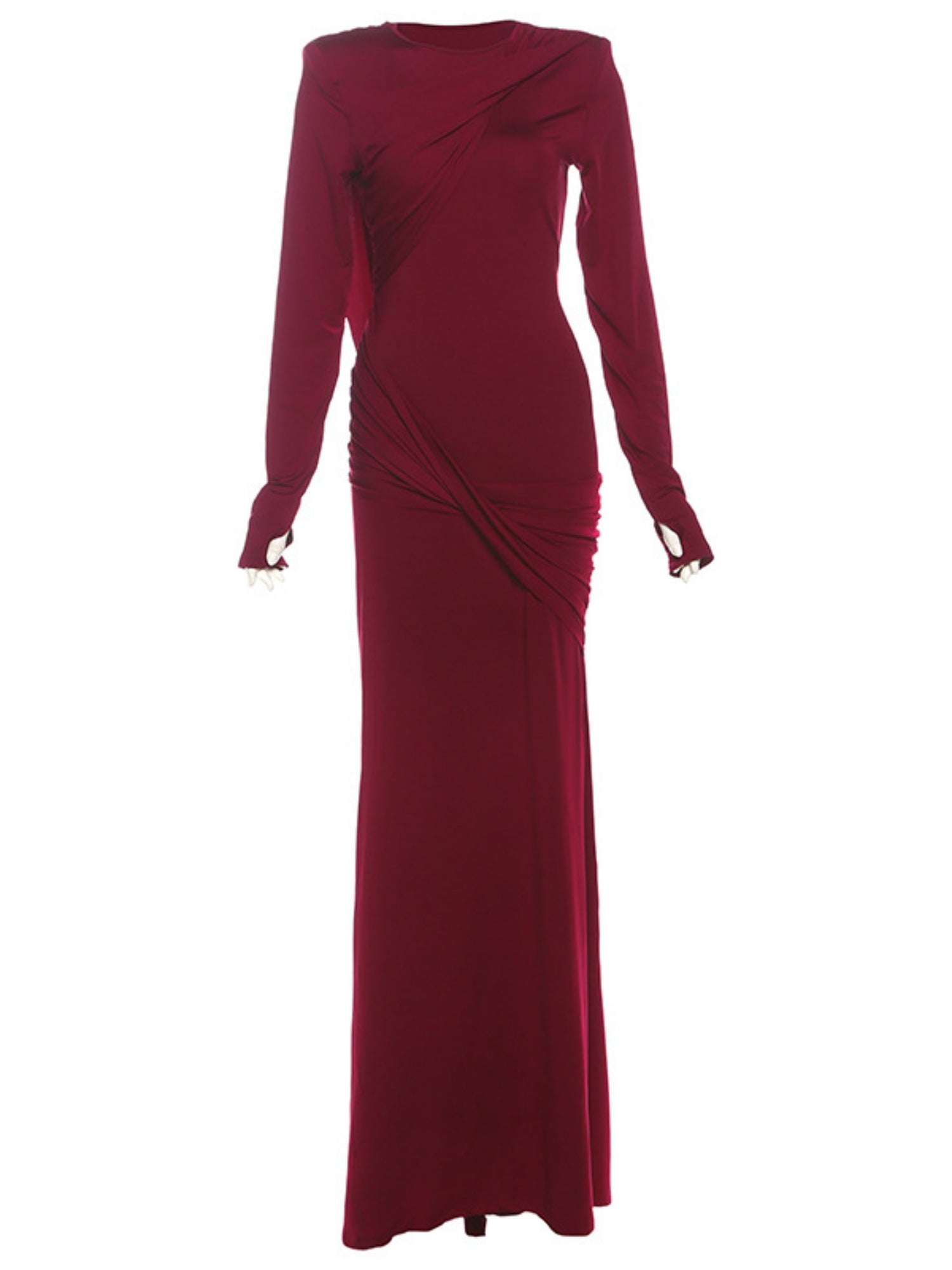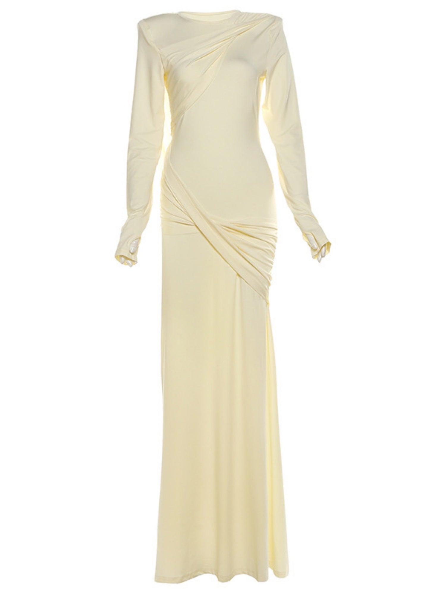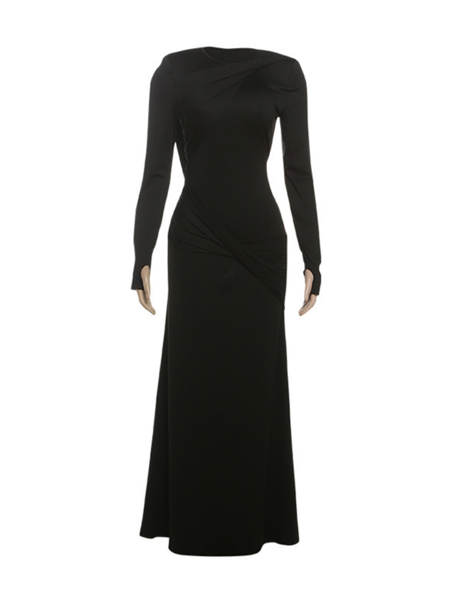 Backless Long-sleeved Solid Color Temperament Sexy Slim Long Dress Women's Clothing
