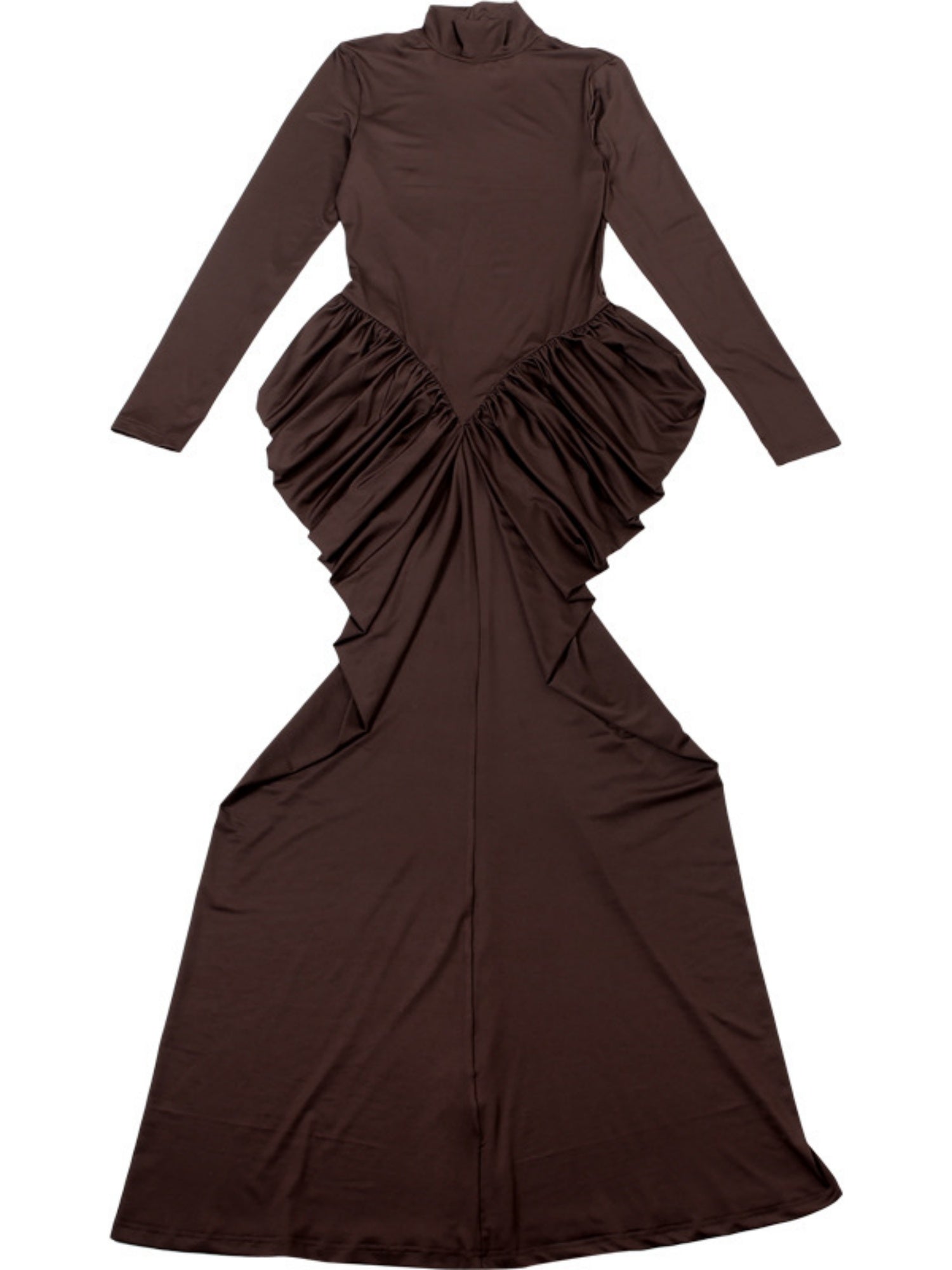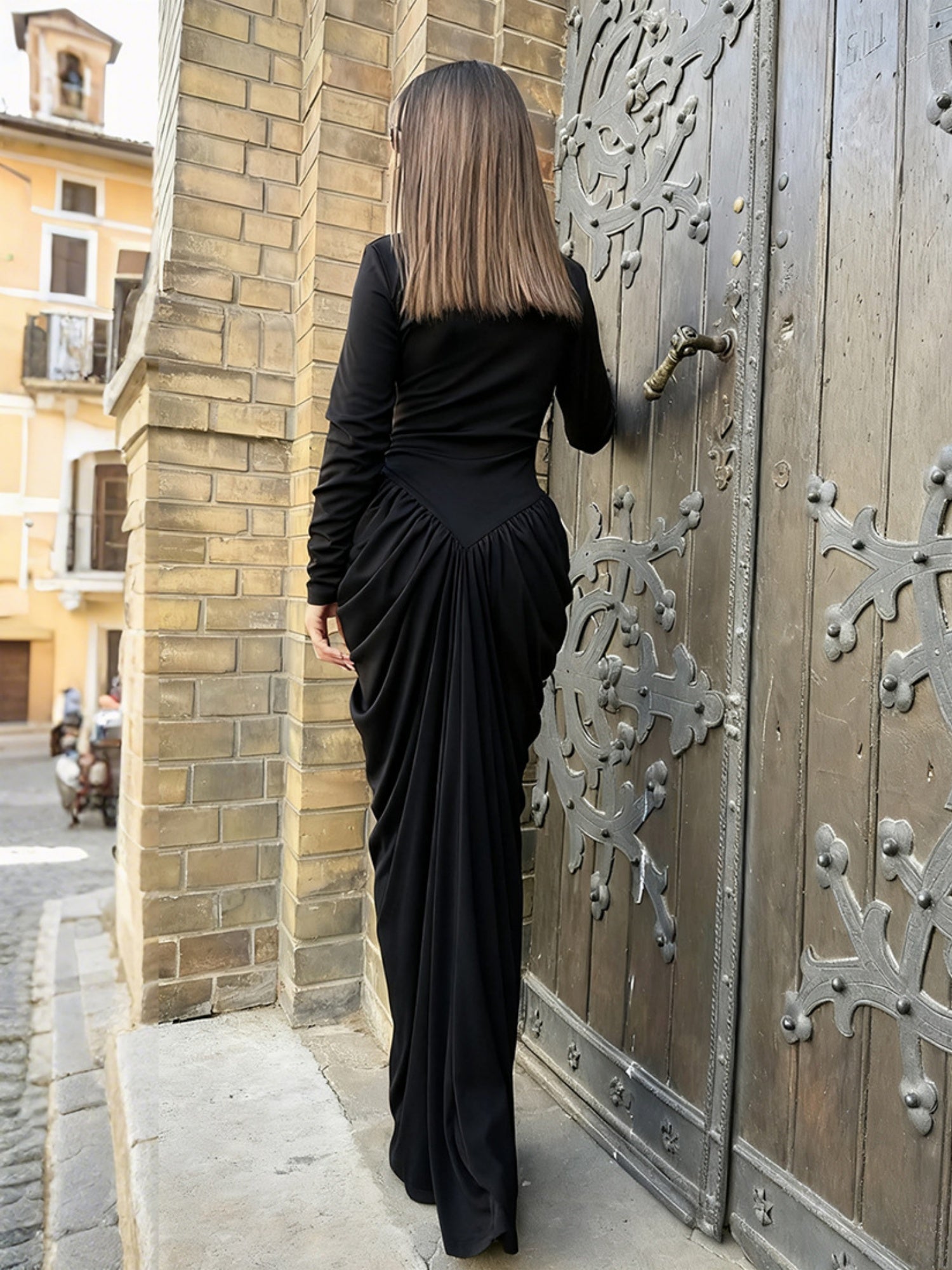 Sexy Slim Fit Solid Color Long-sleeved Dress With Pleated Hips And Waist