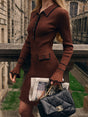 Spliced Chanel Style Long-sleeved Lapel Button-down Ruffled Knitted Mid-length Dress