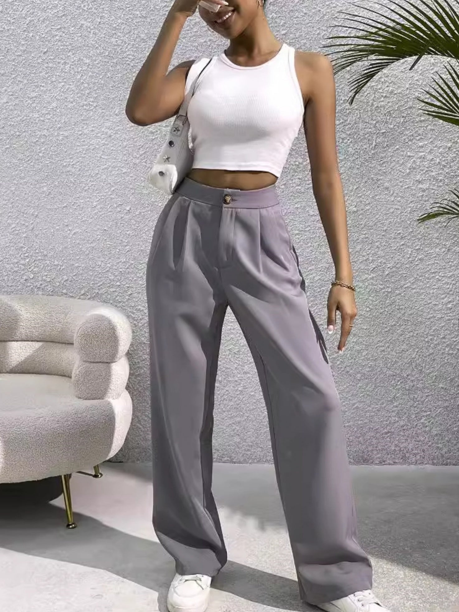 Pleated Suit Wide-leg Pants For Women High Waist Drape Loose Straight Floor-length Trousers