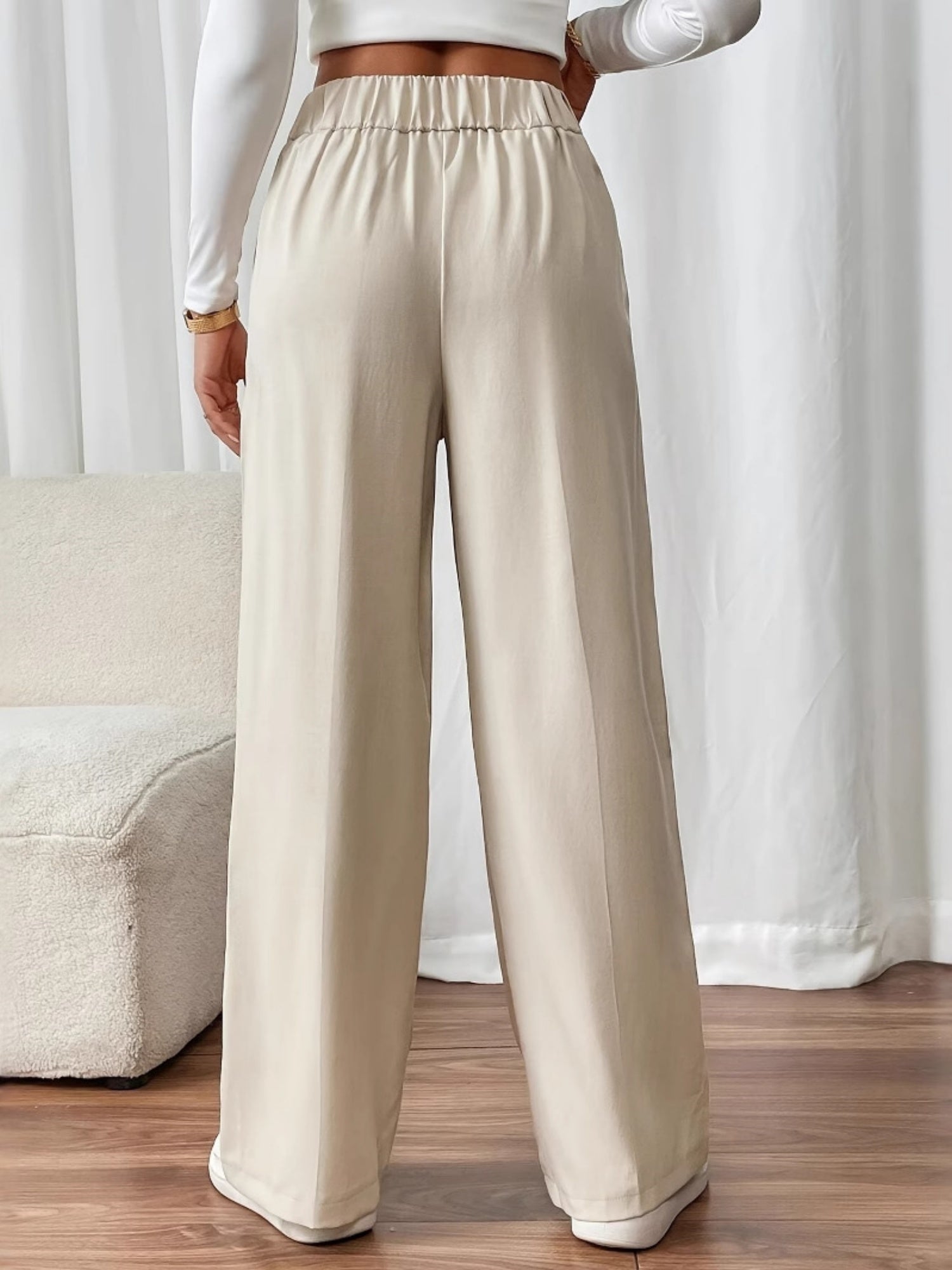Pleated Button Draped Casual Pants High Waist Trousers Loose Straight Trousers