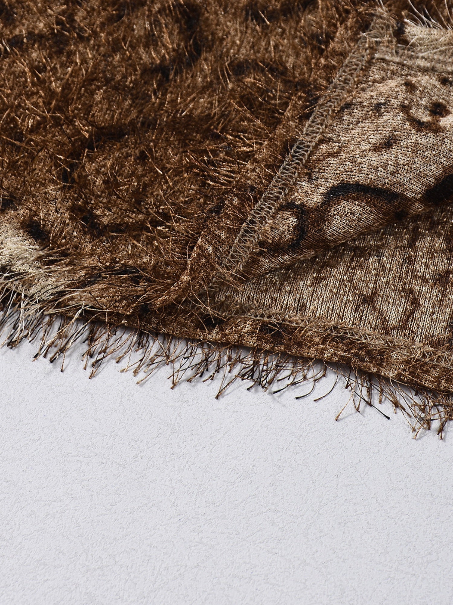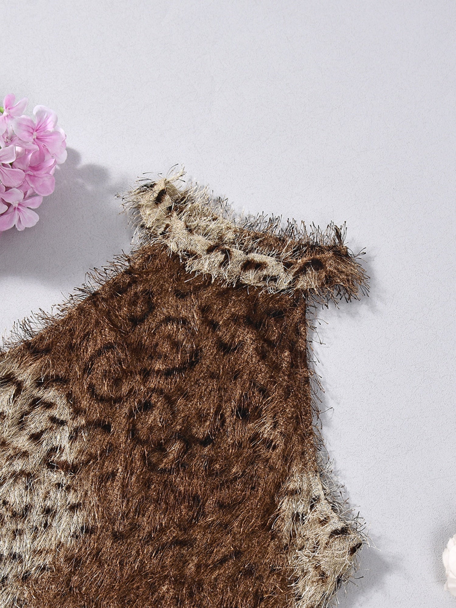 Liber Leopard Print Color Matching Mock Neck Hip Wrap Mini&Short Dresses