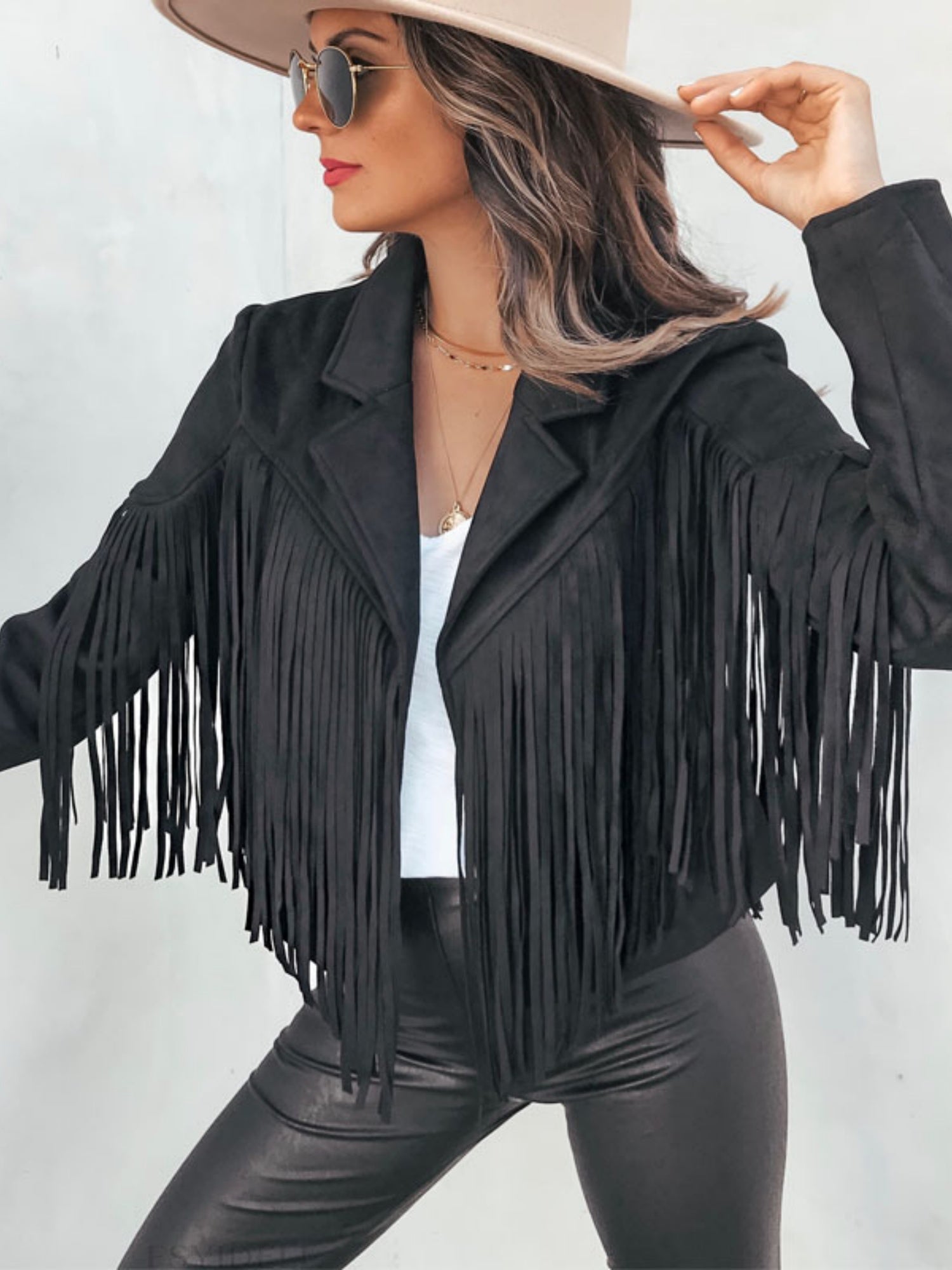 Suede Collared Tassel Short Autumn/winter Long-sleeved Leather Jacket