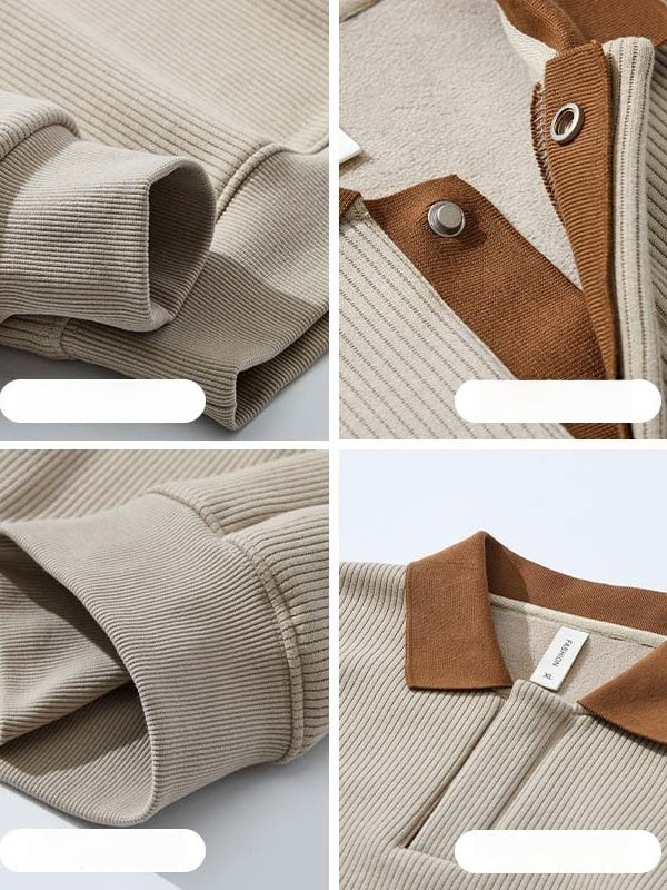 Contrasting Colors Lapel Stripes Sweatshirts