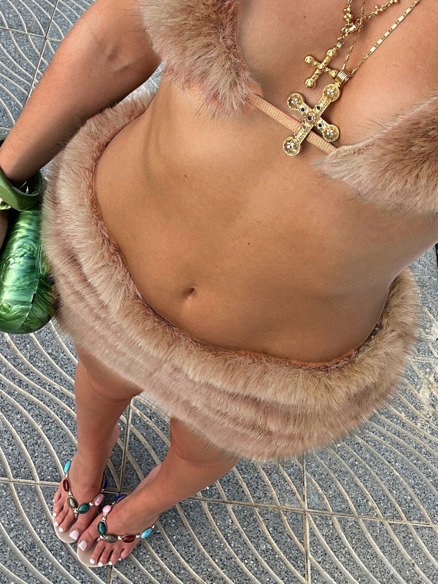 Side Pleats Low-rise Furry Bodycon Skirt