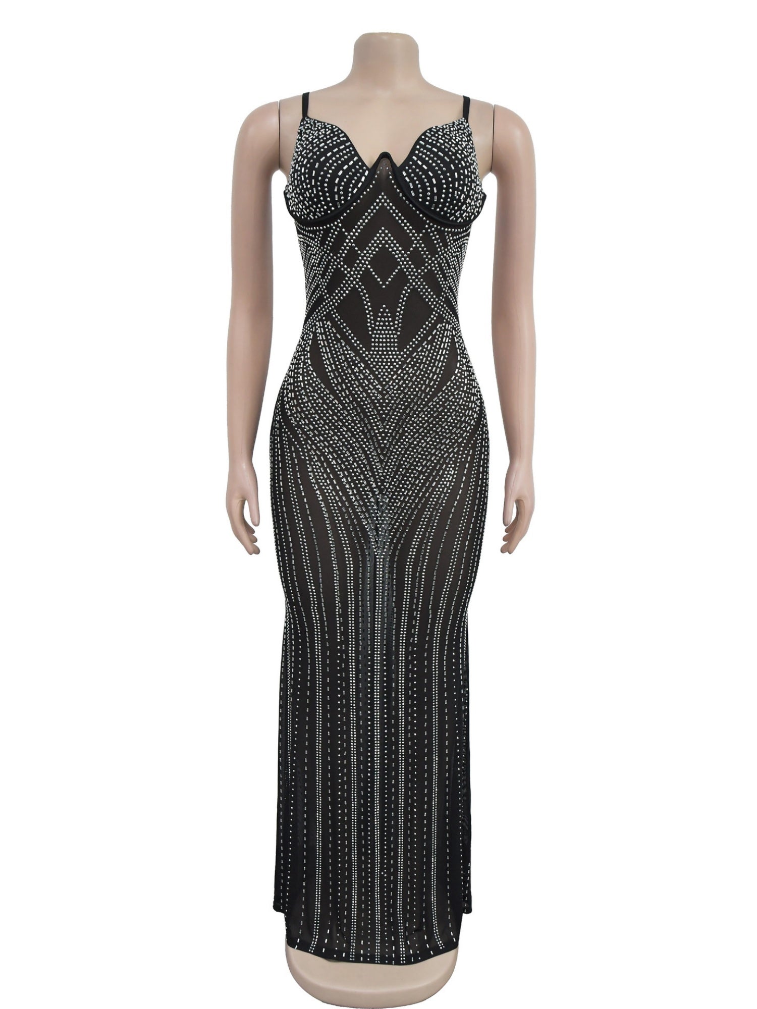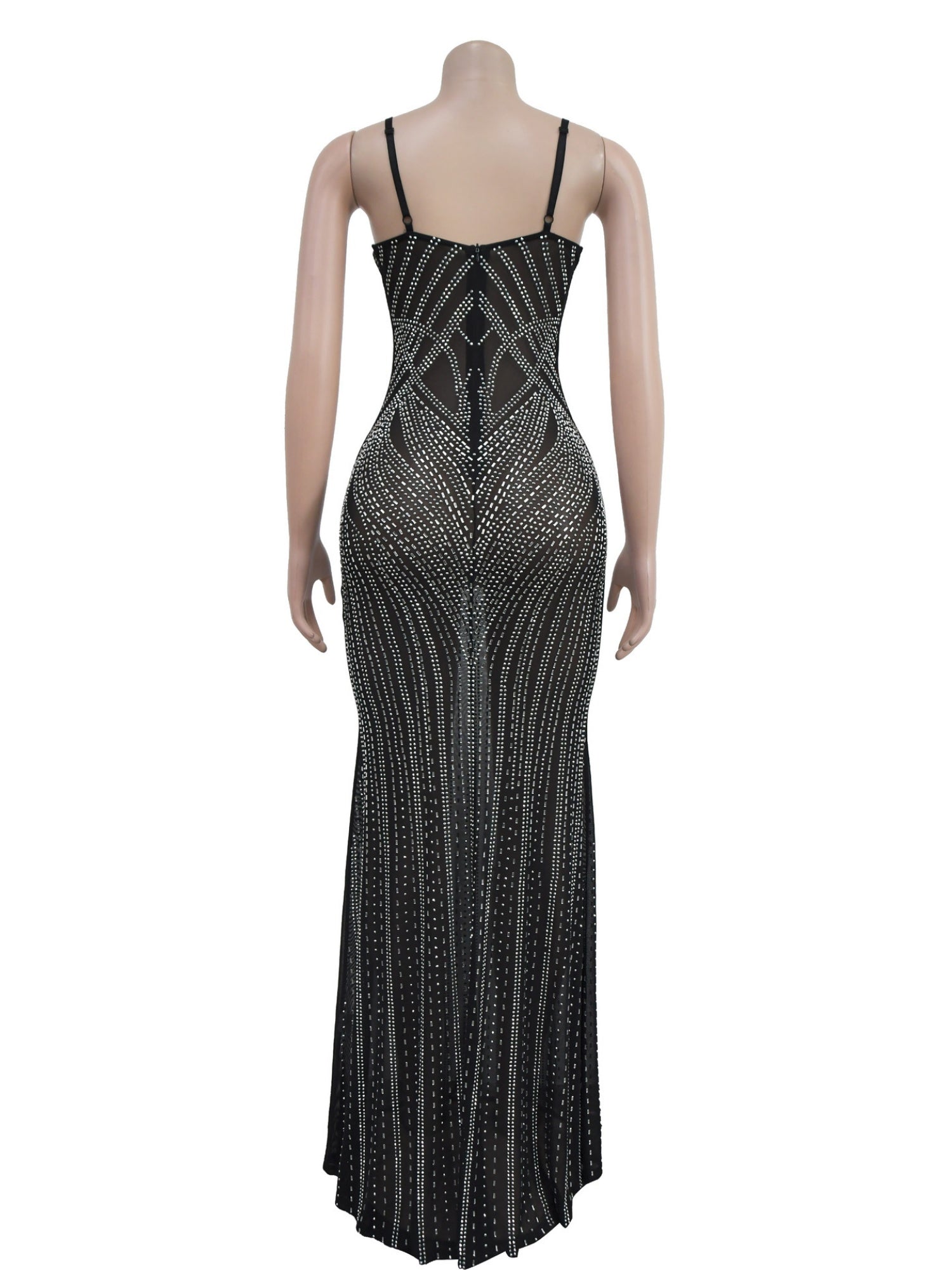 Sleeveless Bodycon Rhinestone Suspenders Slim-fit Party Shiny Maxi Dresses