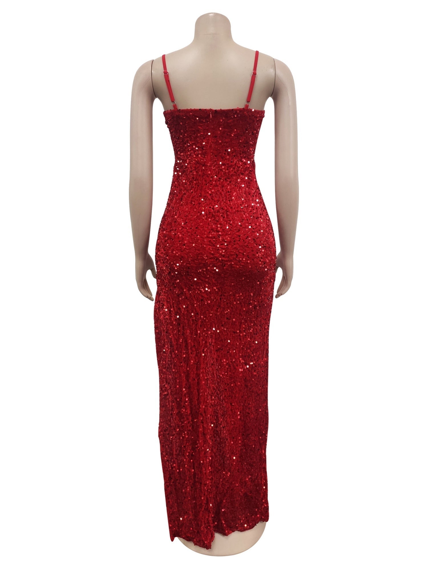 Sequins Mesh Patchwork See-through Evening Gown Suspenders Maxi Dresses