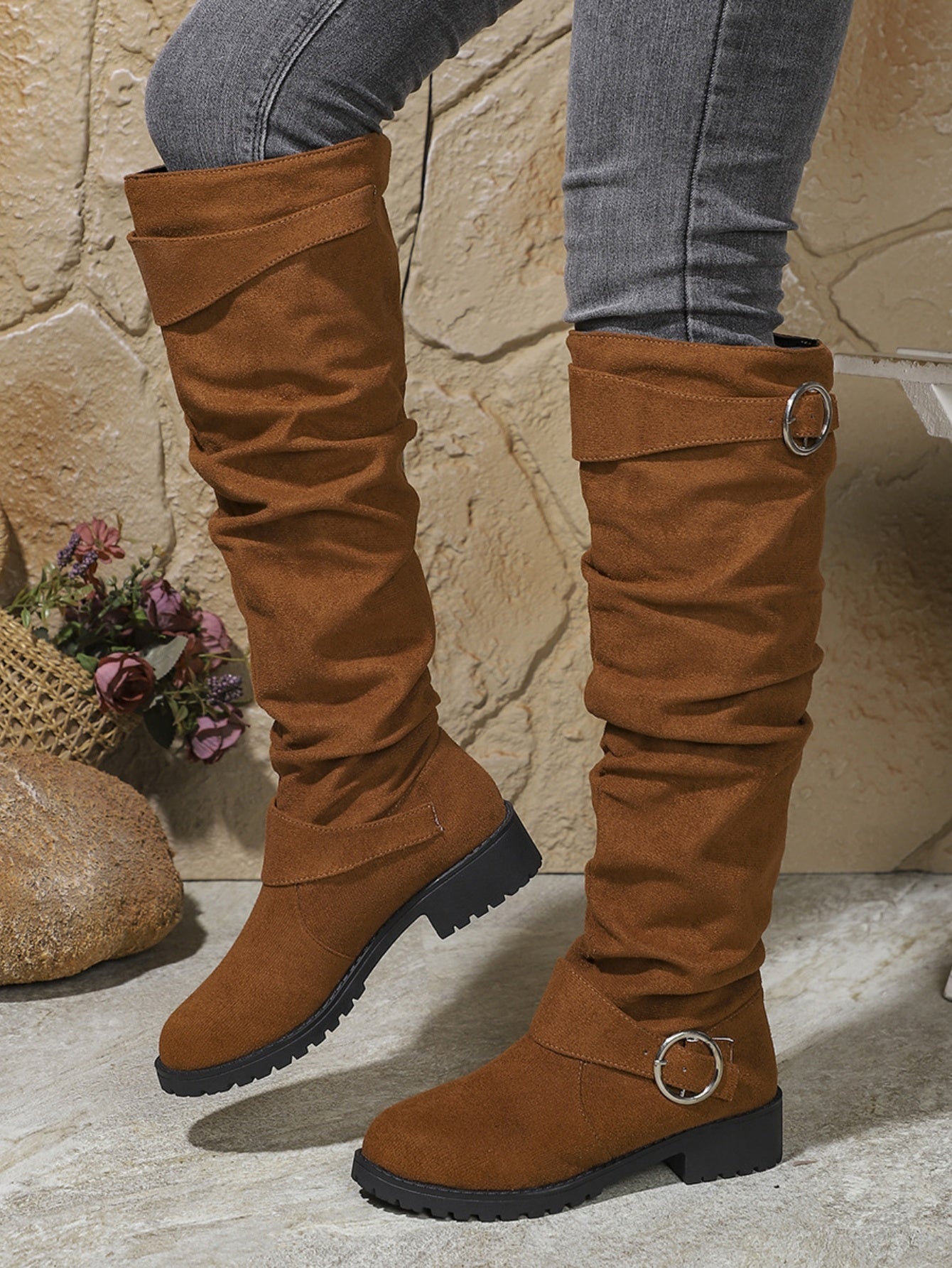 Pleated High Boots With Buckle