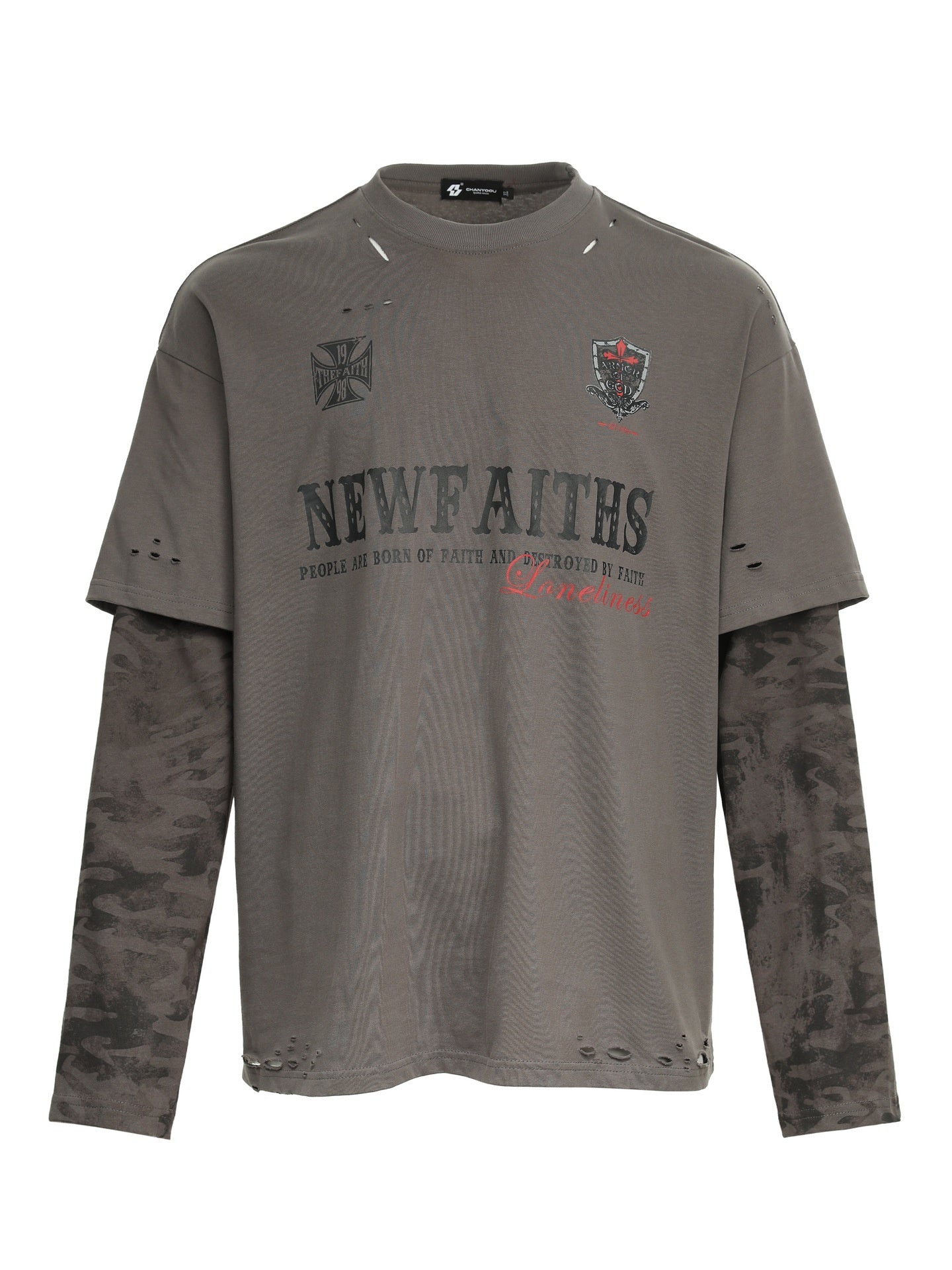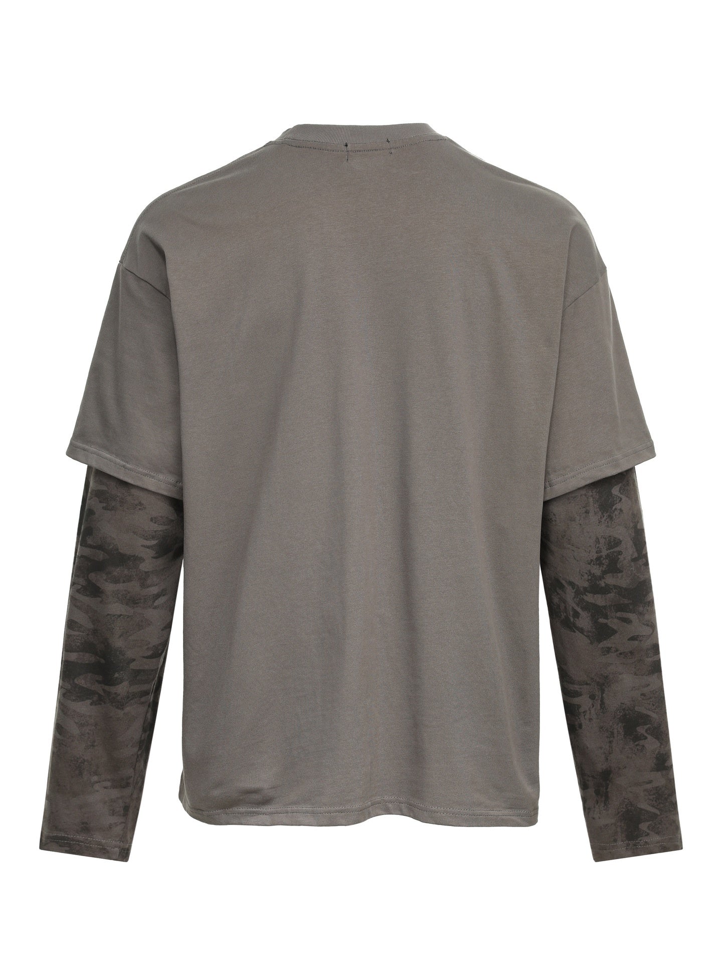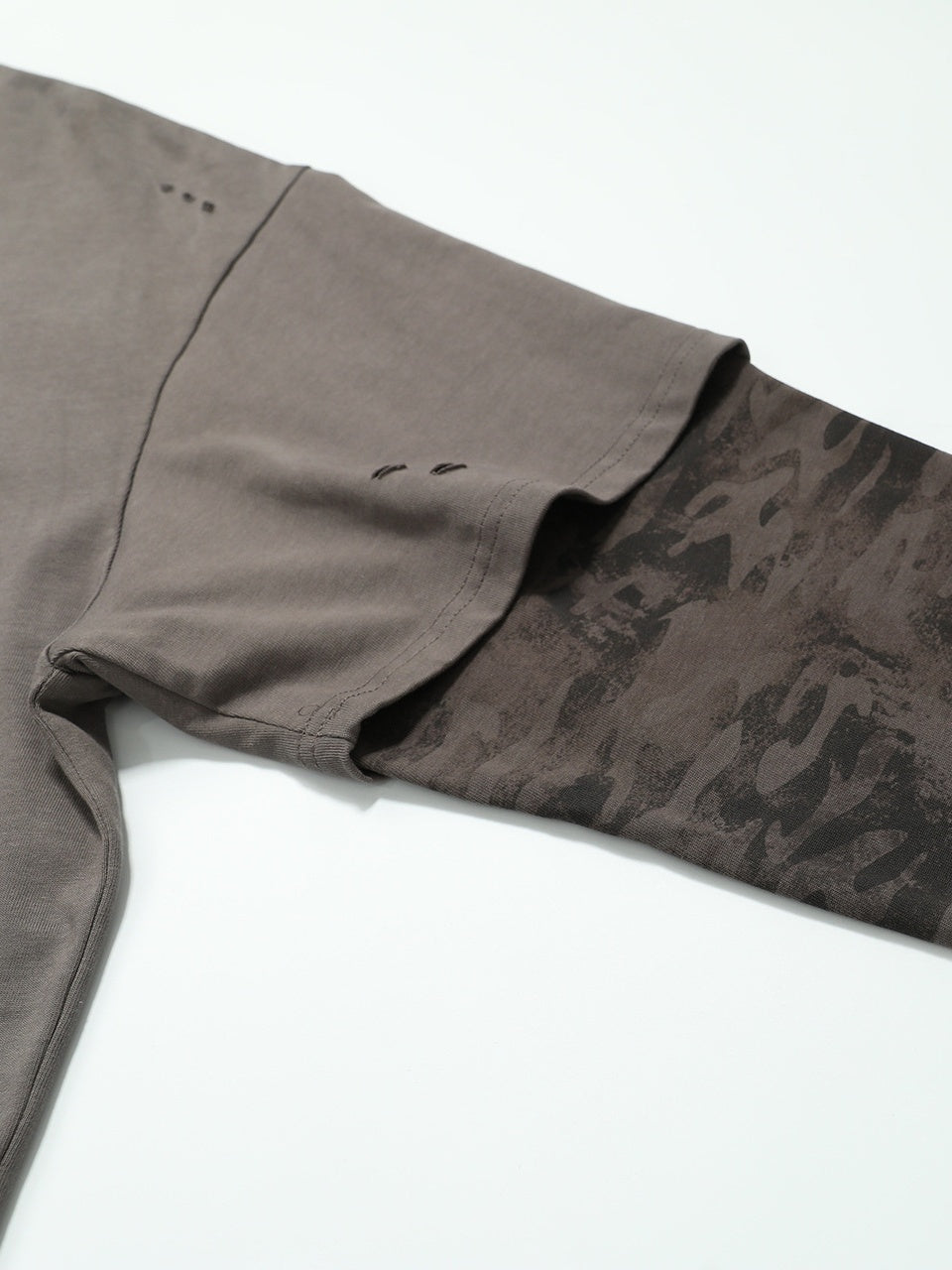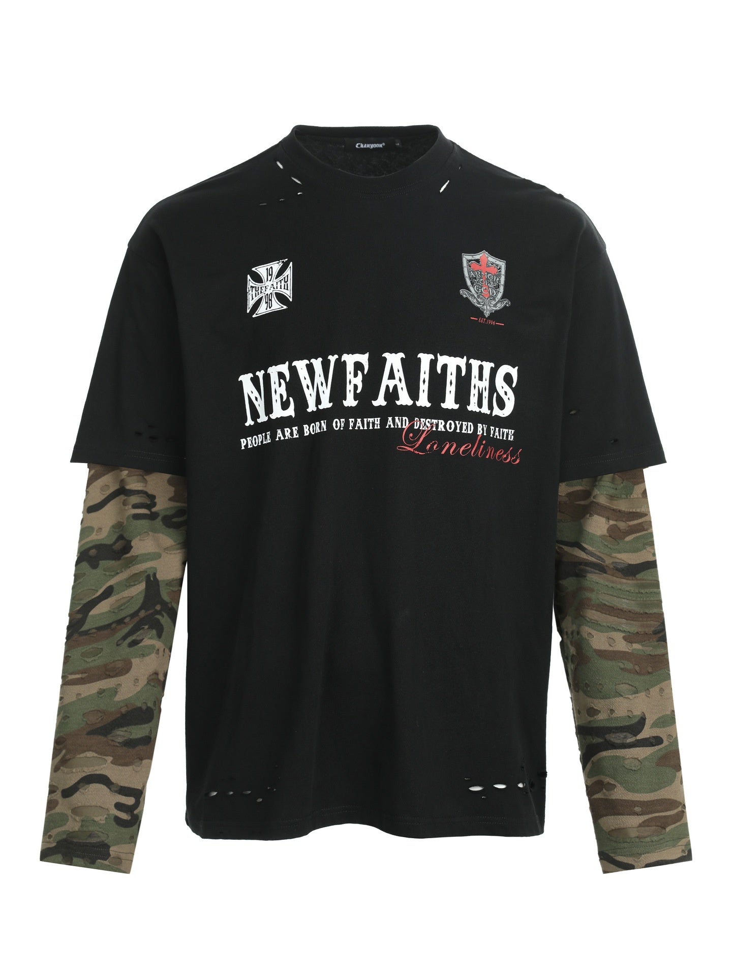 Hole Camouflage Splicing Fake Two Pieces Long-sleeved T-shirt
