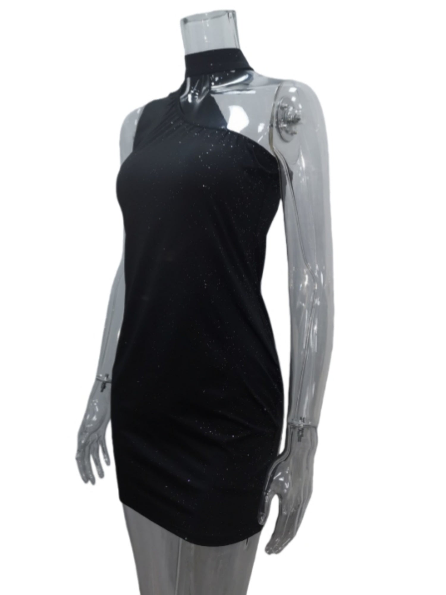 Sloping Shoulder Halter Neck Sequins Hip Wrap Sleeveless Mini&Short Dresses
