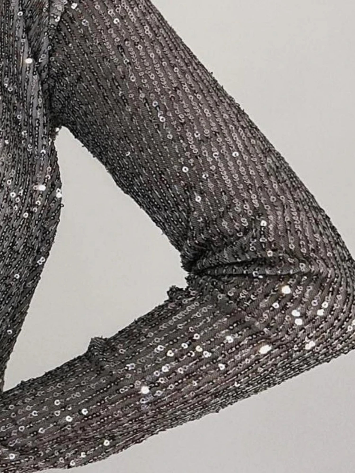 Sequins Perspective Long Sleeves Deep V-neck Jumpsuits&Bodysuits