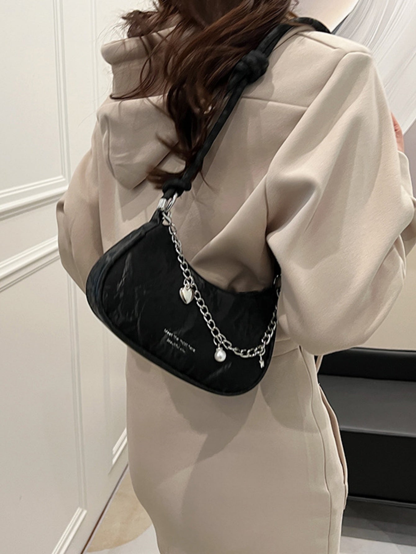 Heart-shaped Metal Chain Crossbody Bag
