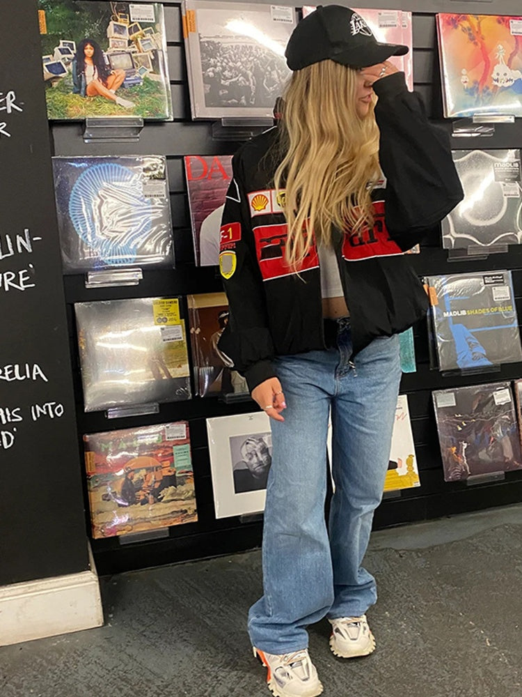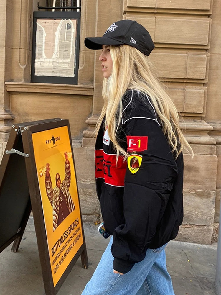 Color-blocked Printed Quilted Long-sleeved Motorcycle Style Jackets