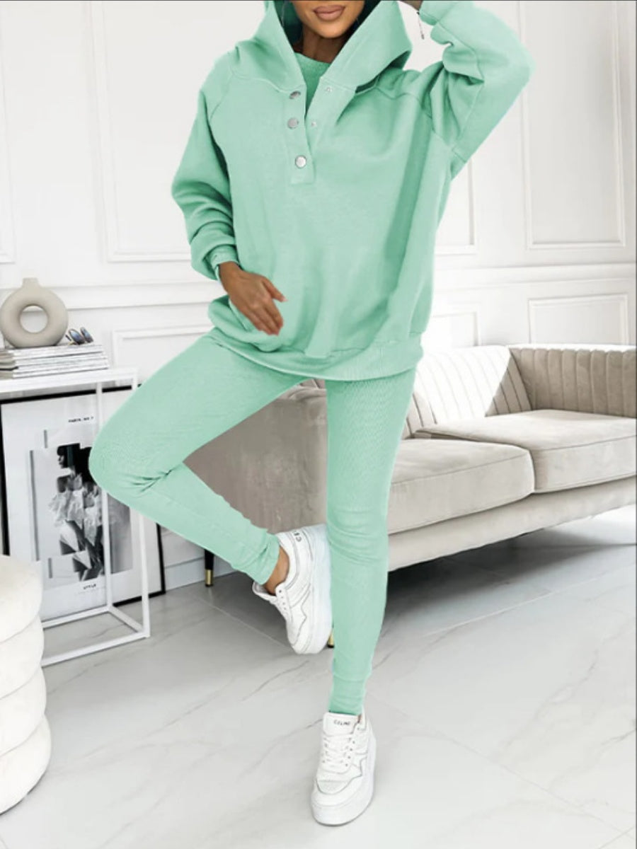Sporty Casual Hoodie Sweatshirt, Ribbed Slim Fit Vest And Pants Three-piece Set