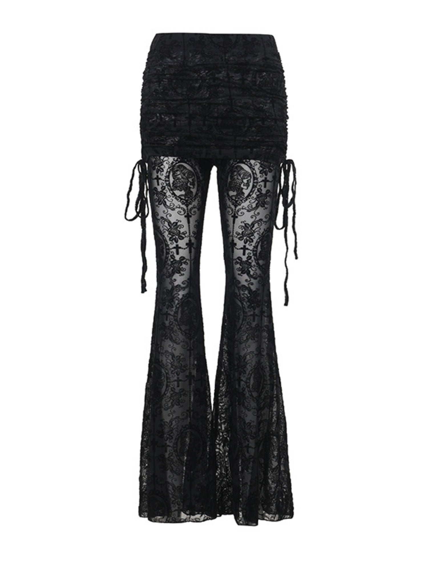 Y2K Velvet Lace Patchwork Hollowed-out Perspective High-waisted Flared Pants Slimming Pants
