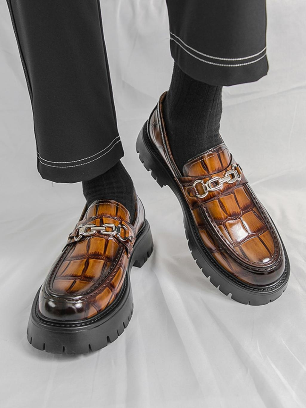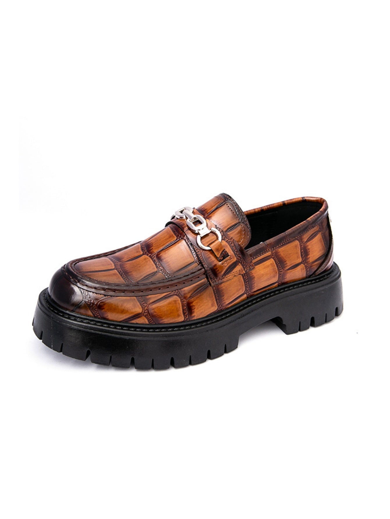 Stone-patterned Metal Buckle Platform Slip-on Loafers