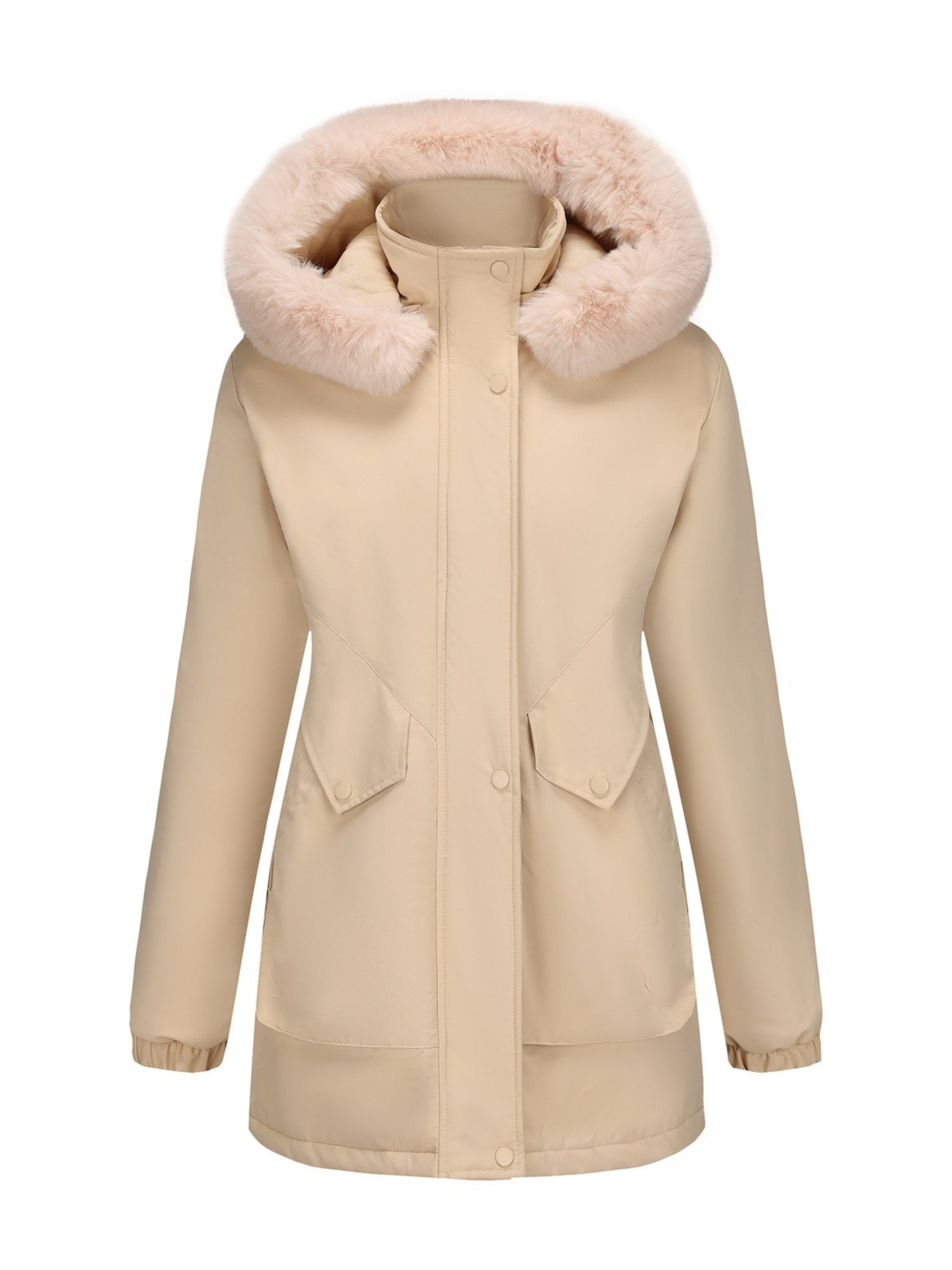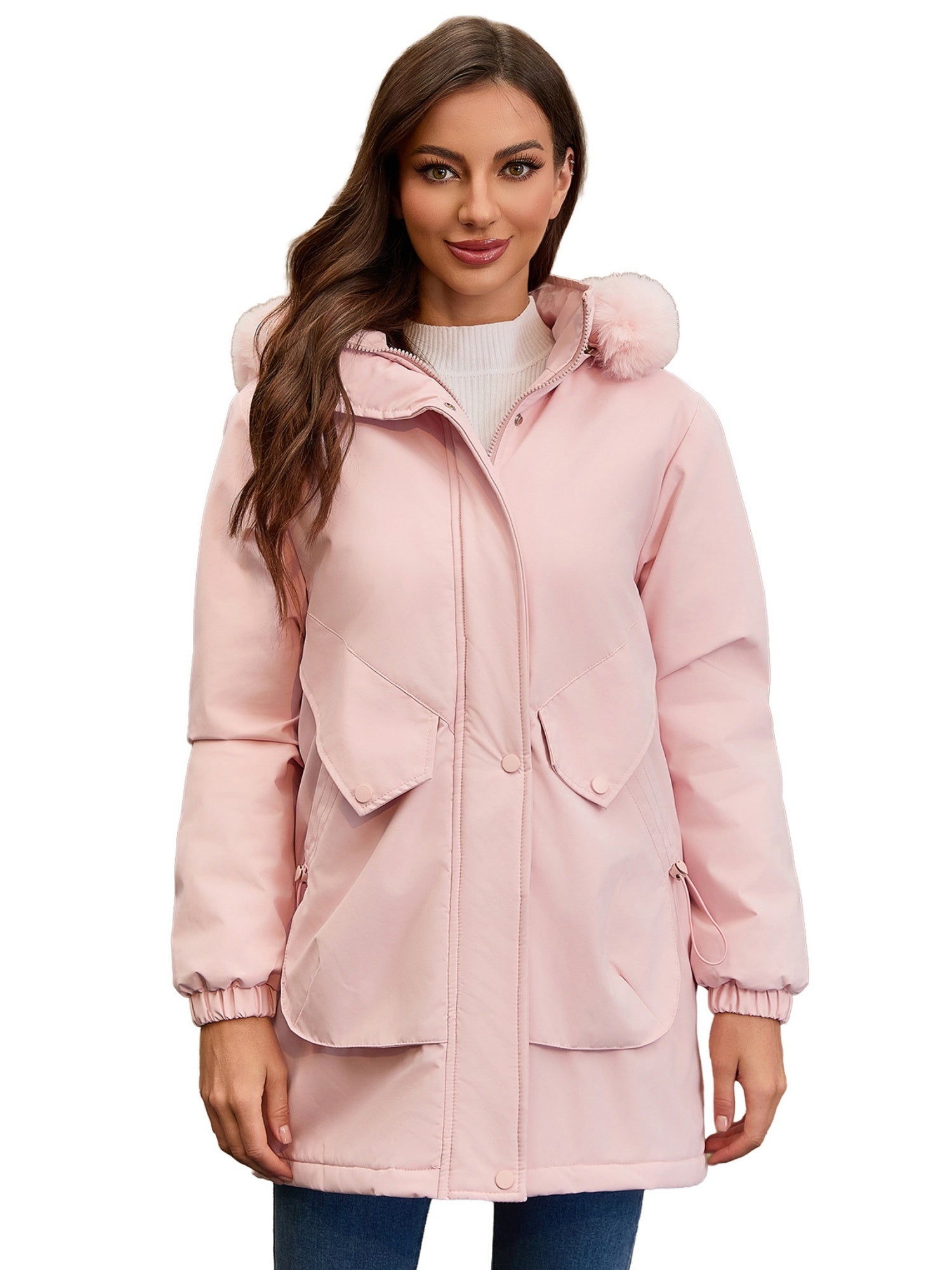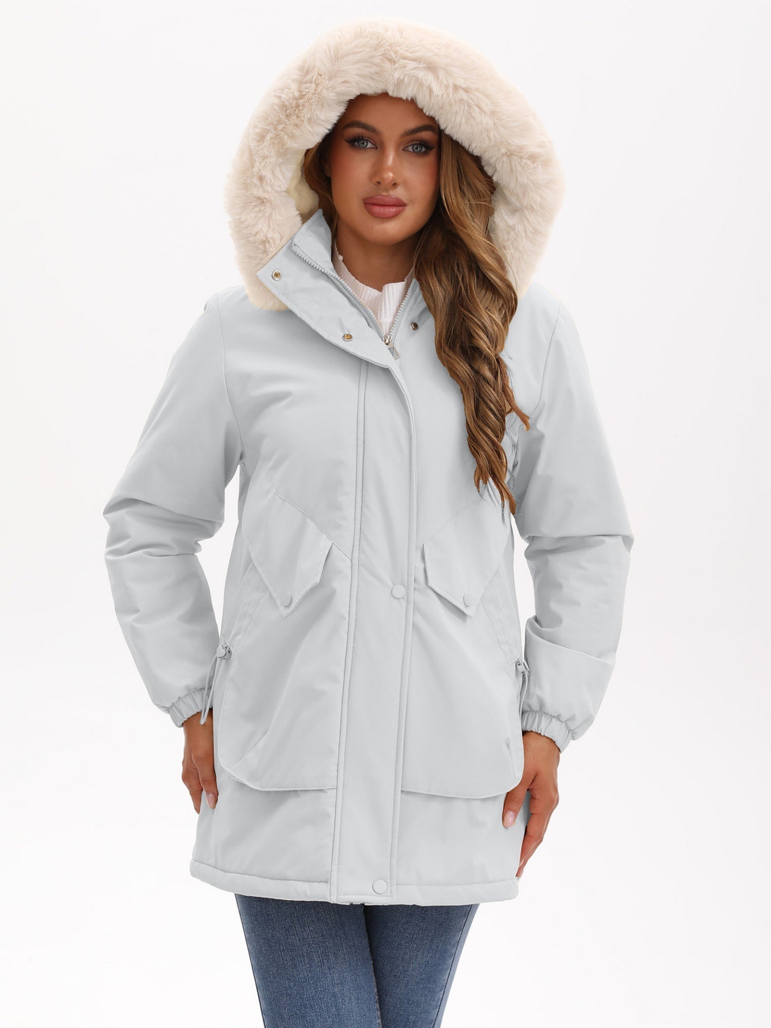 With Fur Collar Hooded For Warmth Drawstring Pocket Down Jacket