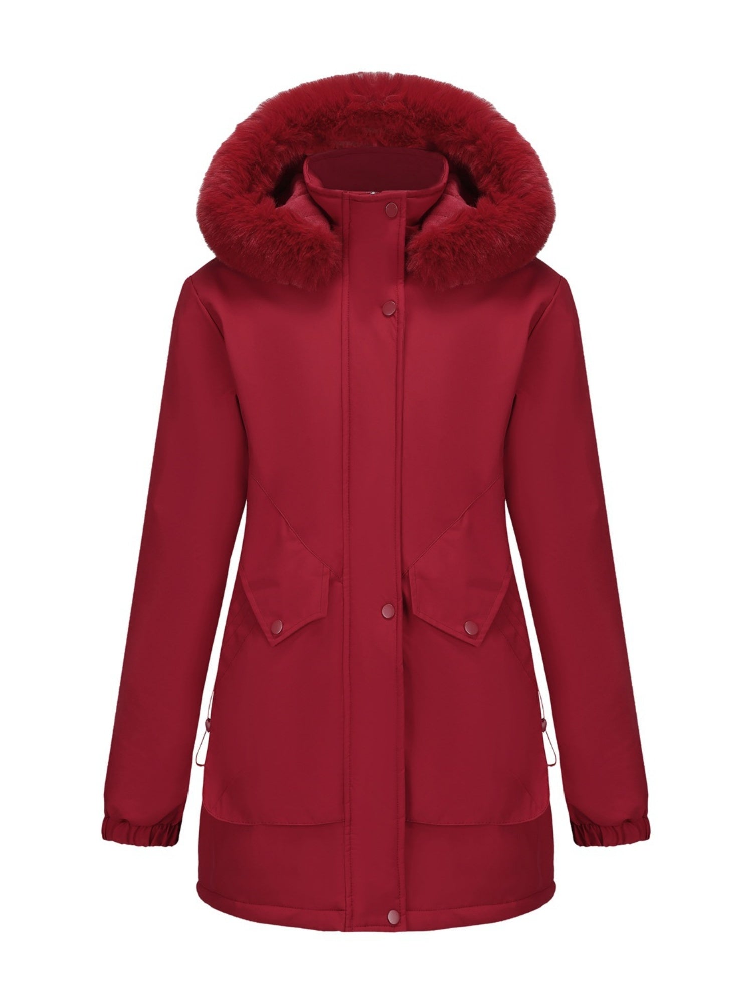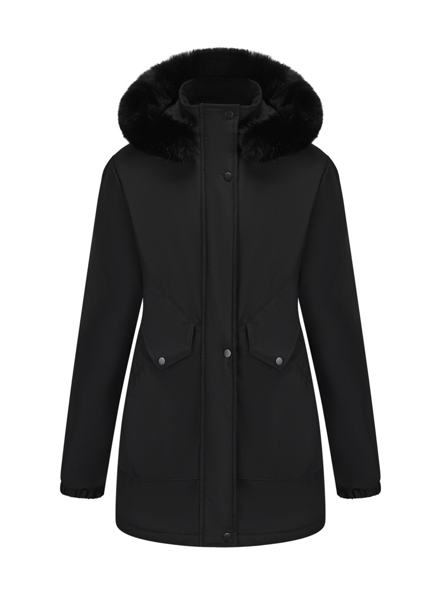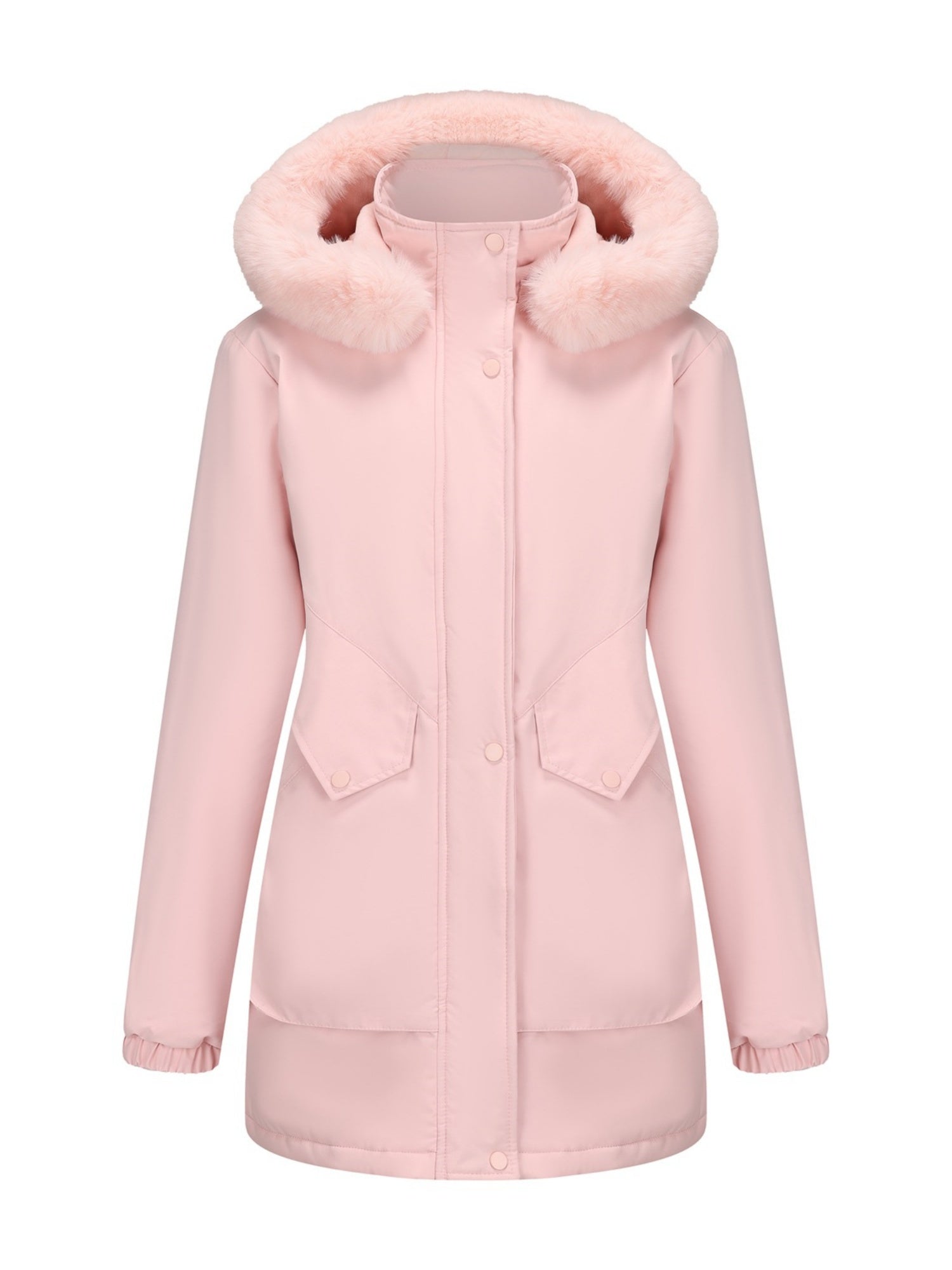With Fur Collar Hooded For Warmth Drawstring Pocket Down Jacket