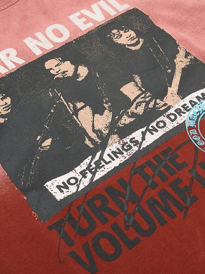 Washed Distressed Figure Printed Loose-fit Hole T-shirts