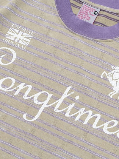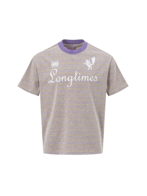 Distressed Letter Printed Color-blocked Stripes T-shirts