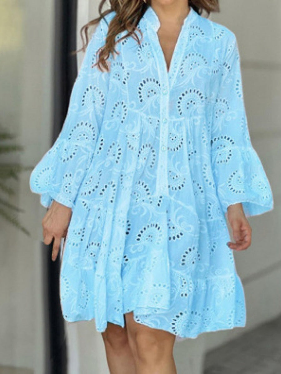 Embroidery Hollow Loose-fit Midi Dresses