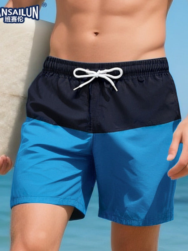 Loose-fit Straight-fit Breathable Color-blocked Four Points Beach Shorts