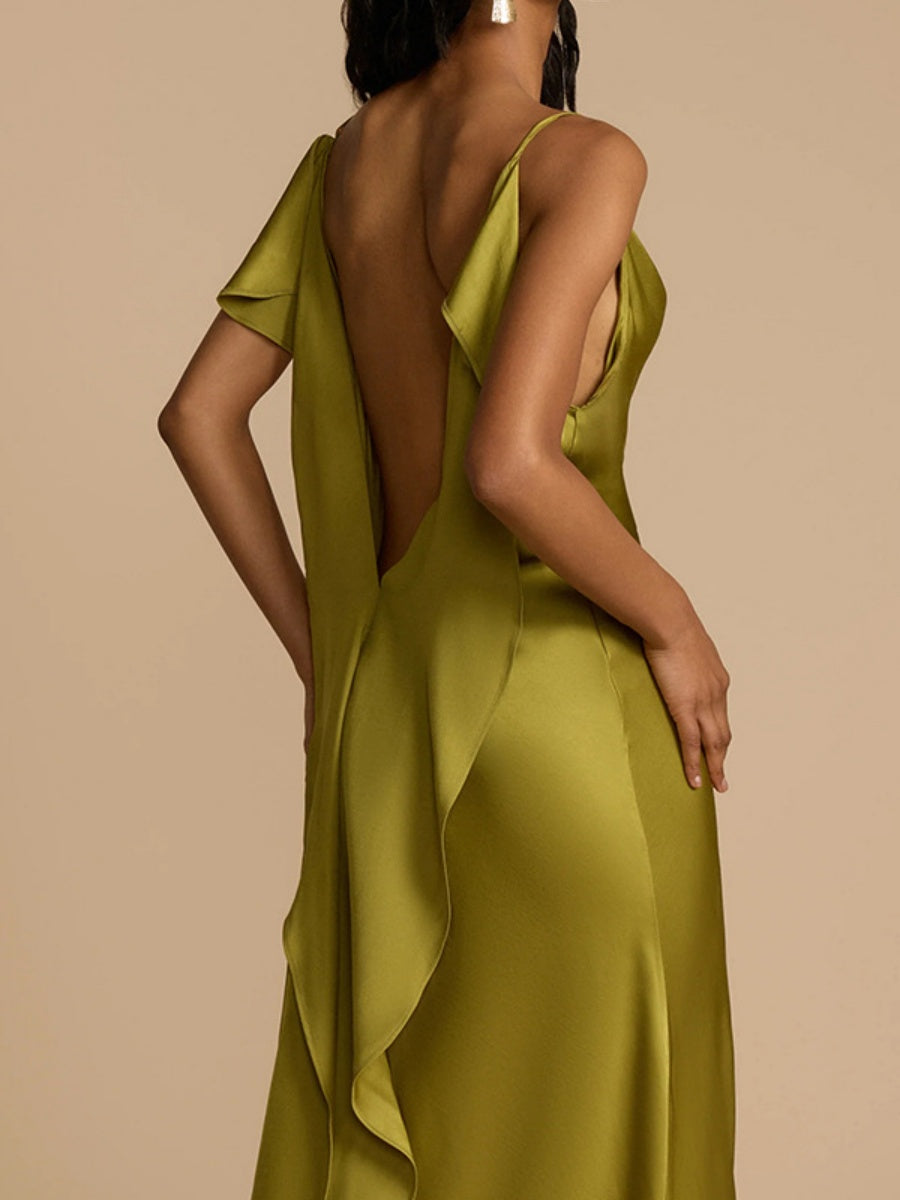 Backless Ribbon Satin Slits Wedding Maxi Dresses